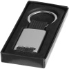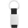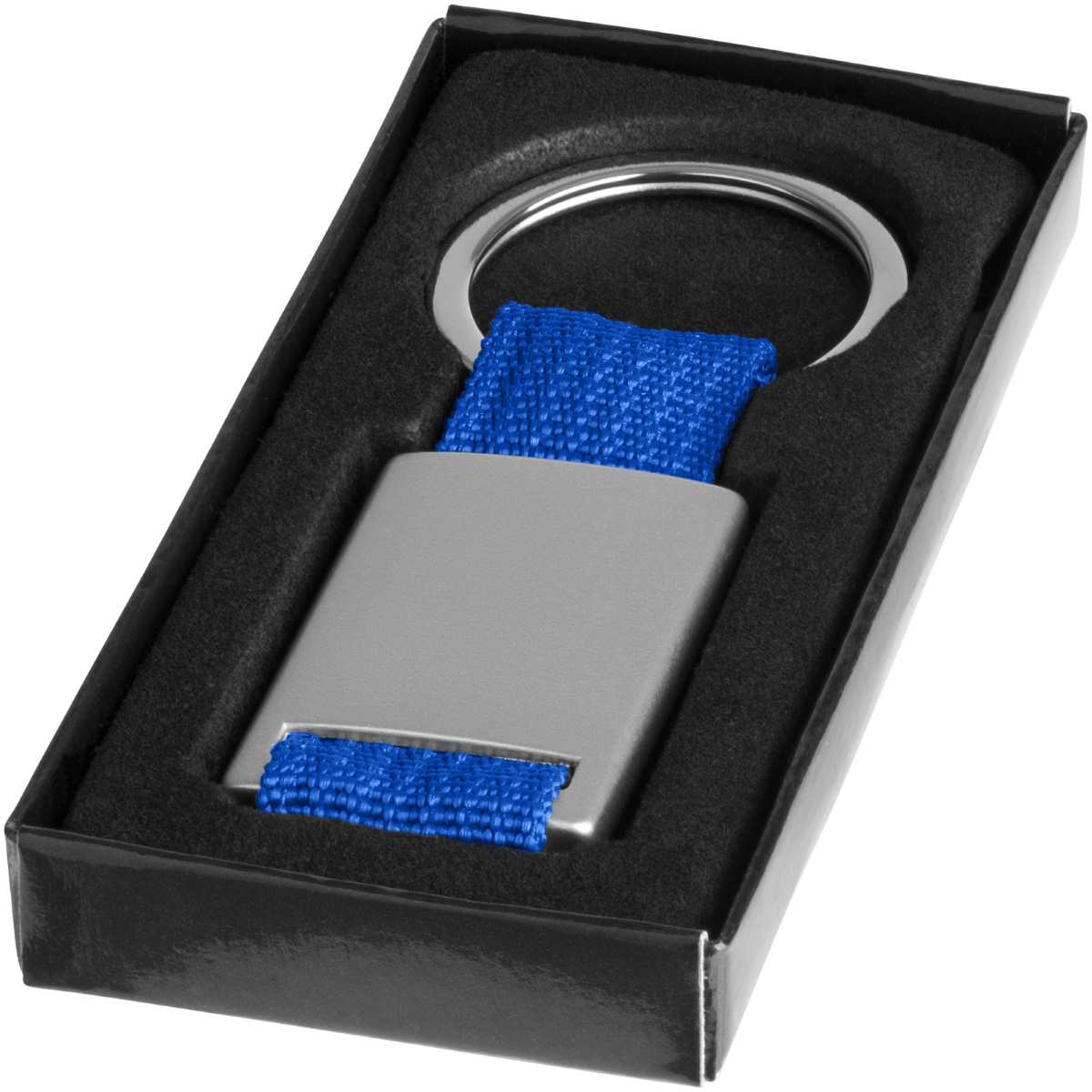 Neliön muotoinen avaimenperä, moderni muotoilu. Alumiini ja värillinen polyester reunus. Sisältää mustan lahjapakkauksen.