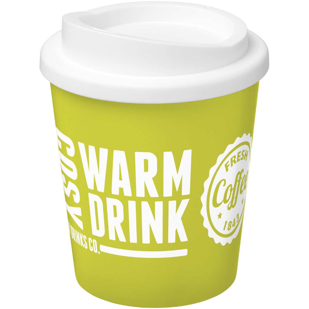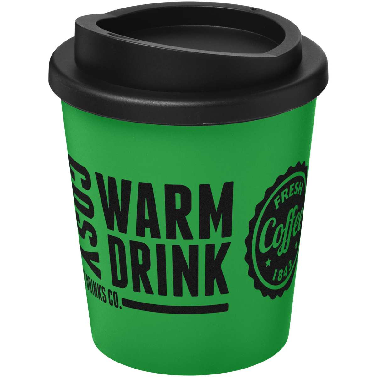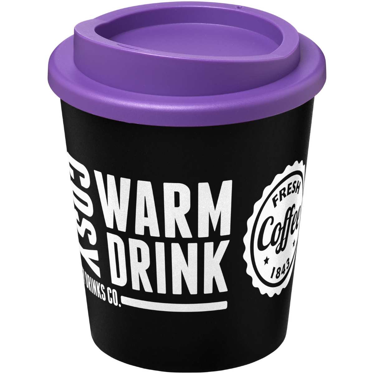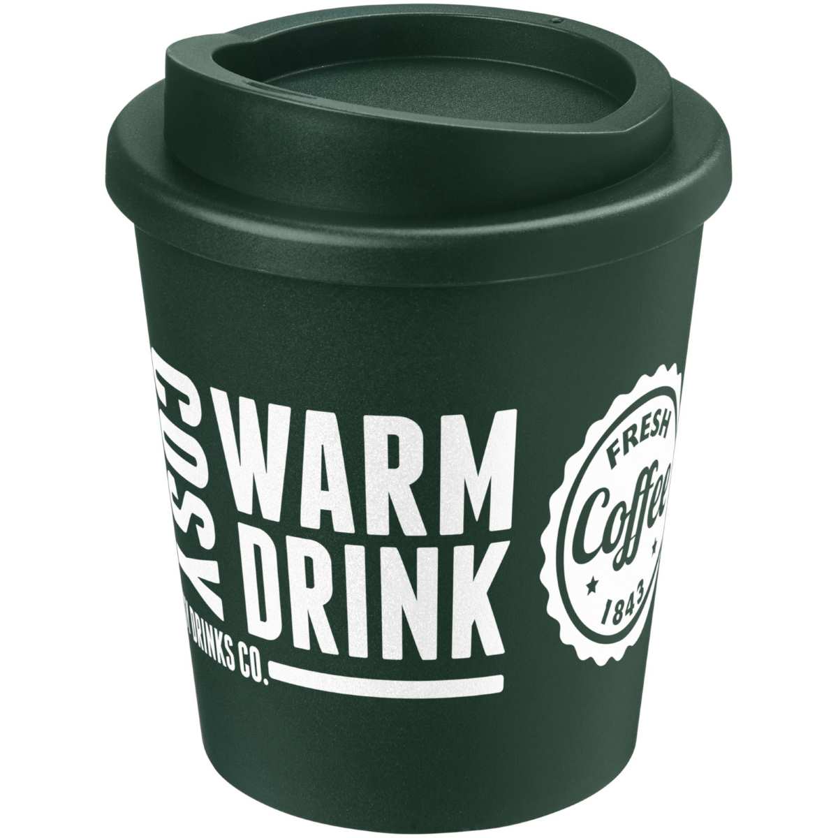 Kompakti, kaksiseinäinen eristetty muki, jossa on kierrettävä kansi. Sopii useimpien kahvikoneiden. Tilavuus on 250 ml. Sekoita värejä ja luo täydellinen muki. Tehty Isossa-Britanniassa. Pakattu kompostoituvaan pussiin. BPA-vapaa.