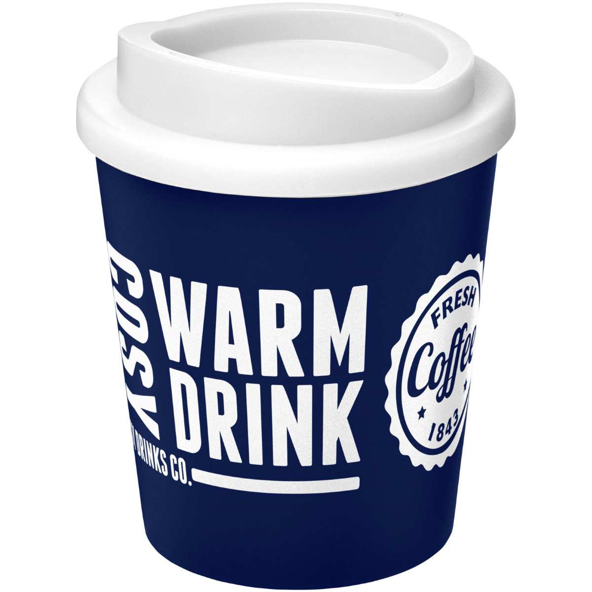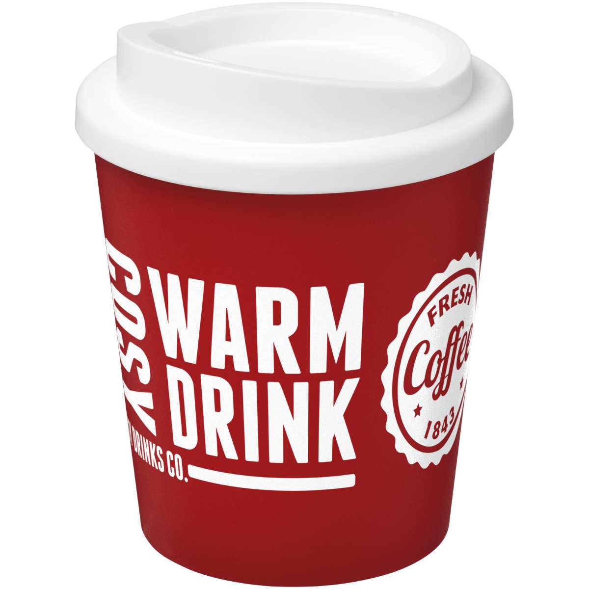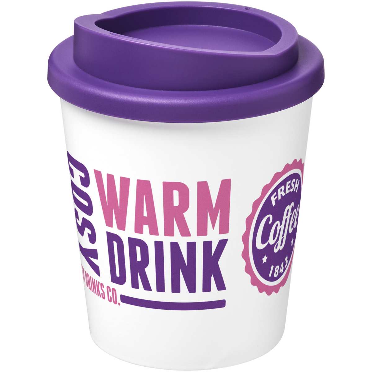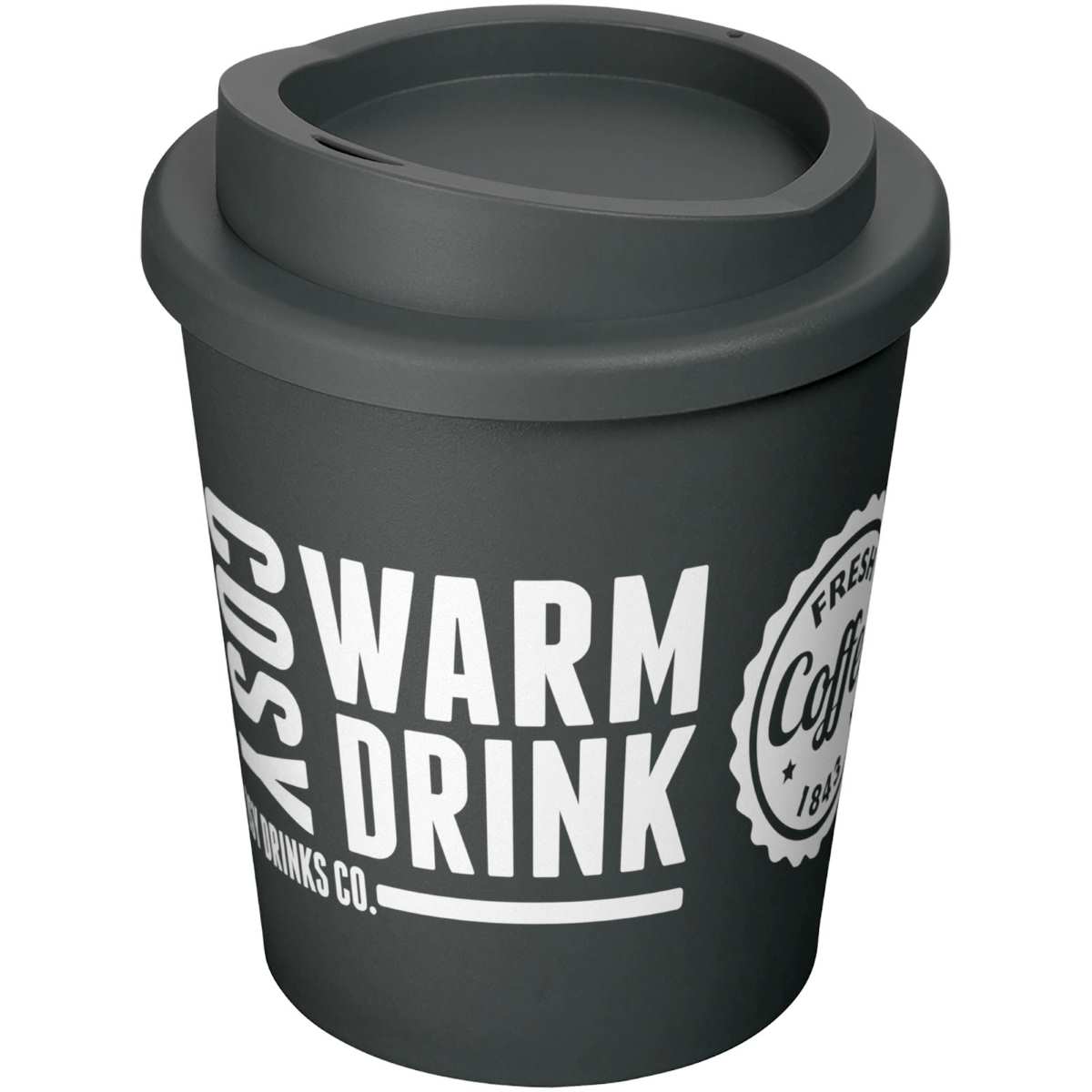 Kompakti, kaksiseinäinen eristetty muki, jossa on kierrettävä kansi. Sopii useimpien kahvikoneiden. Tilavuus on 250 ml. Sekoita värejä ja luo täydellinen muki. Tehty Isossa-Britanniassa. Pakattu kompostoituvaan pussiin. BPA-vapaa.