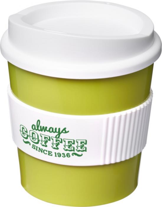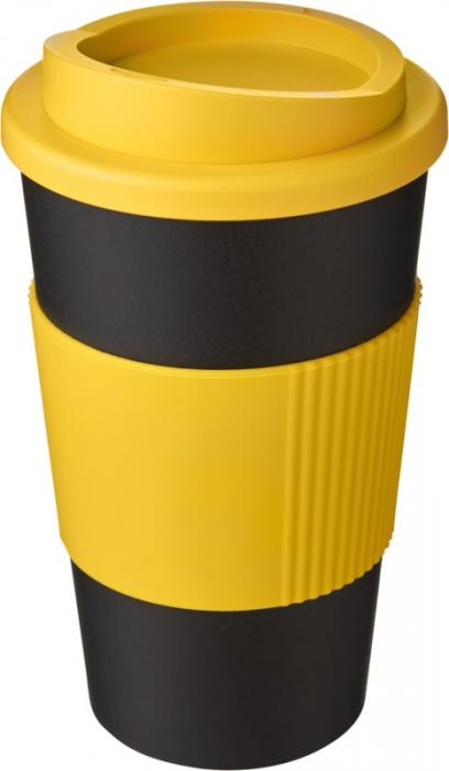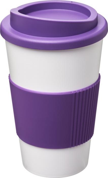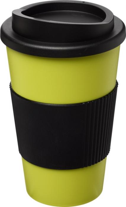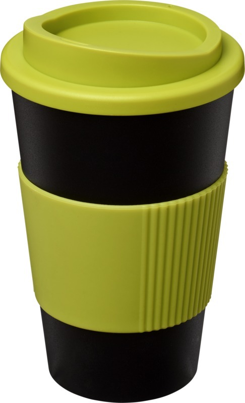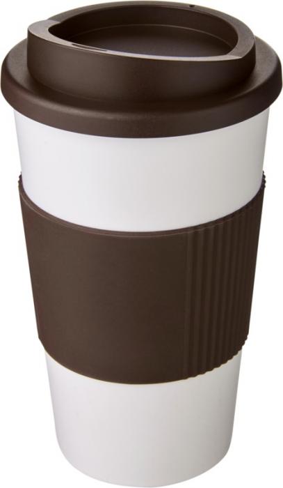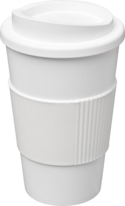 Kaksiseinäinen eristetty muki, jossa on kierrettävä kansi ja silikoninen oterengas. Juomasi pysyy lämpimänä päivän askareiden aikana!
