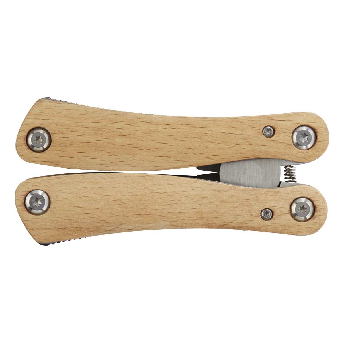Vahva, kestävä ja kookas monitoimityökalu, joka on valmistettu korkealaatuisesta ruostumattomasta teräksestä ja sen kahvat pyökistä. Tämä on erinomainen työkalu kaikille partiolaisille, käsityöläisille ja ulkoilijoille. Sisältää 12 toimintoa: suuret kärkipihdit, vakiopihdit, vaijerileikkuri, hammastettu terä, keskikokoinen veitsi, Philips-ruuvimeisseli, pullon/tölkin avaaja, litteä ruuvimeisseli, keskikokoinen litteä ruuvimeisseli, saha ja viila ja viilapuhdistin. Valmistukseen käytetyn pyökin alkuperä on kestävä, ympäristöystävällinen ja sosiaalisesti vastuullinen. Avattuna koko on 15 x 6,5 cm ja suljettuna 9,8 x 4,7 cm. Toimitetaan käyttöoppaan kanssa ja pakattuna kierrätettyyn kartonkiseen lahjapakkaukseen, jonka koko on 12 x 7 x 2,5 cm. Logomerkintänä suosittelemme ympäristöä säästävää laserkaiverrusta.