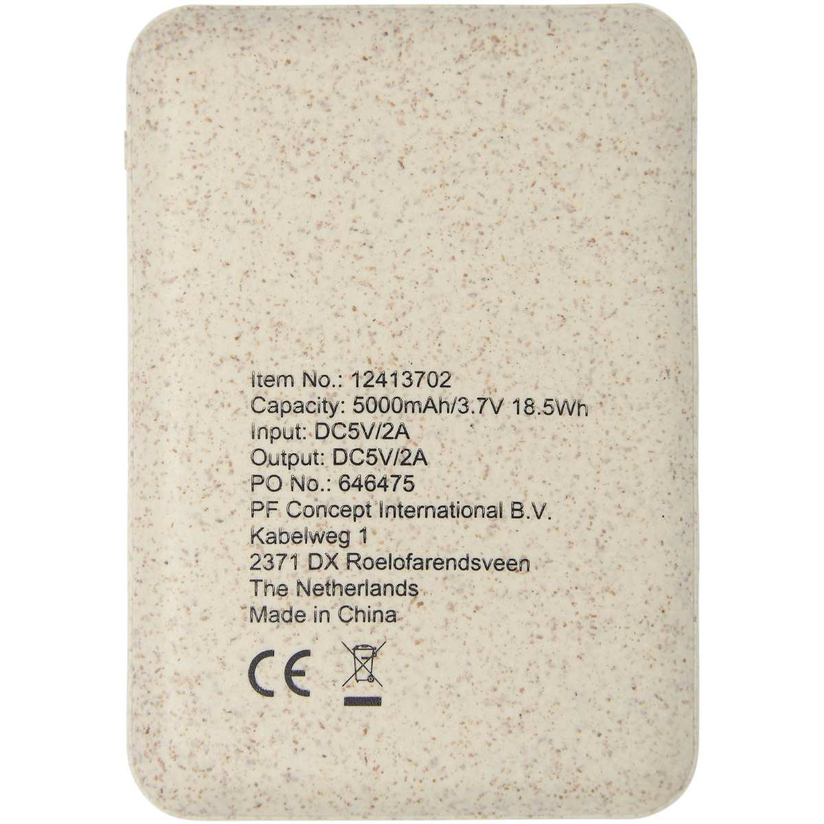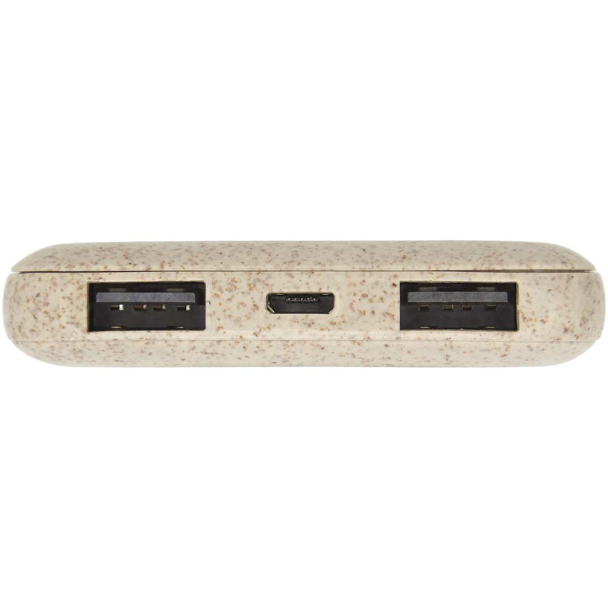 5000 mAh:n kevyt ja kompakti varavirtalähde, joka on valmistettu keskenään sekoitetusta vehnänoljesta ja muovimateriaalista, mikä vähentää tarvittavan muovin määrää. Kaksinkertainen USB-lähtö, joka mahdollistaa kahden laitteen lataamisen samanaikaisesti. Pakattu lahjapakkaukseen ja mukana ohjekirja (molemmat valmistettu ympäristöystävällisestä materiaalista). Mukana Mikro-USB-kaapeli.