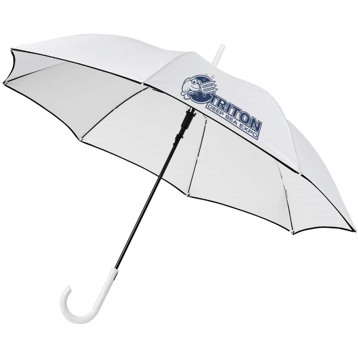 Raikkaan värinen, automaattisesti avautuva ja sulkeutuva pongee-polyesterisateenvarjo. Tukeva metallivarsi ja laadukas runko lasikuituruoteilla toimivat joustavasti tuulessa. Vinokahvassa on integroitu painike. Lasikuiturungon sisäosien värin voi valita, ja samaa väriä käytetään myös kahvassa, kärjissä ja päässä. Suuri koriste-alue jokaisessa paneelissa.