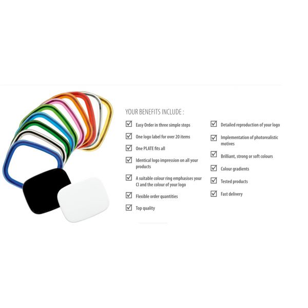 Laatta on valmis ja se sopii yli 20 eri tuotteeseen, ja aina logosi kanssa.