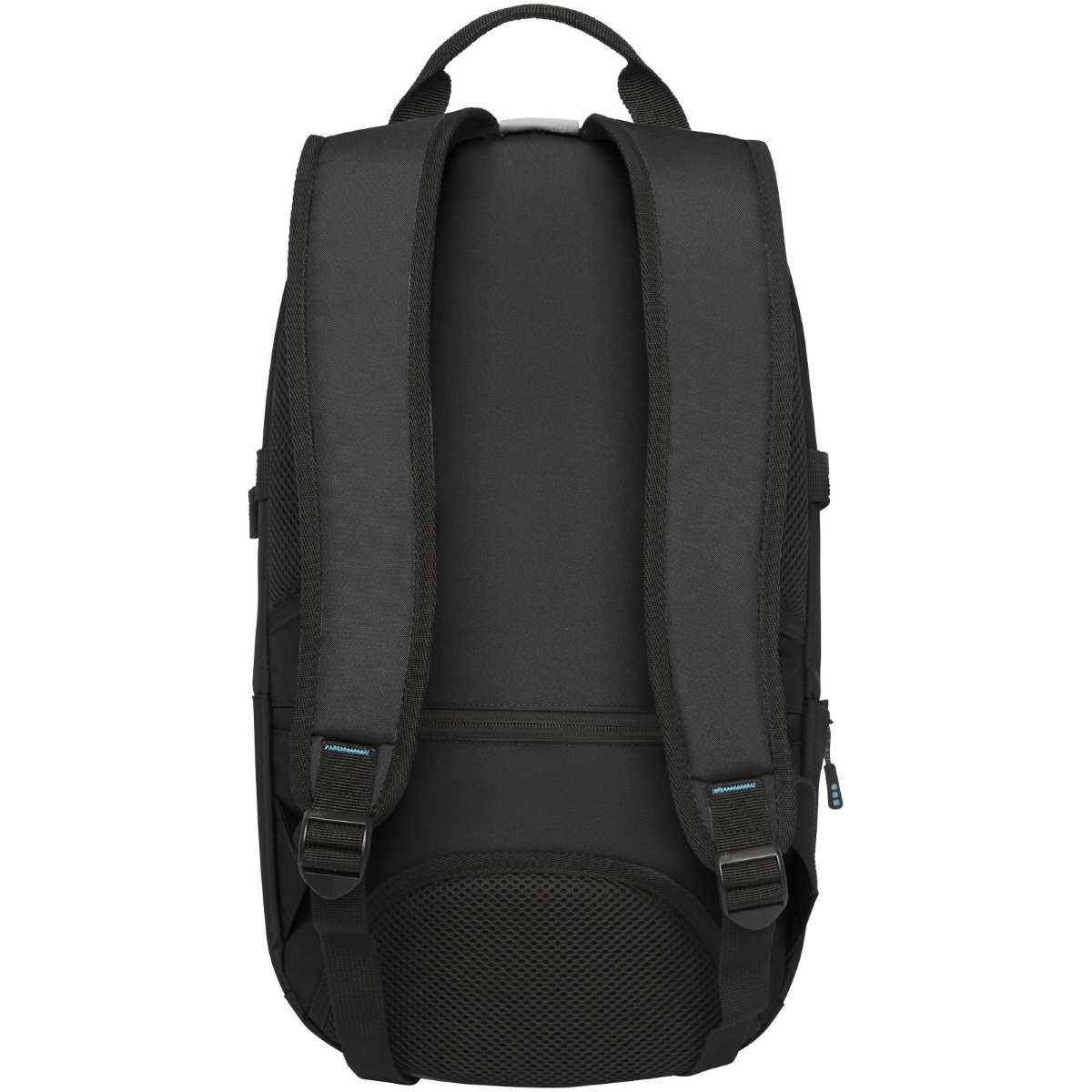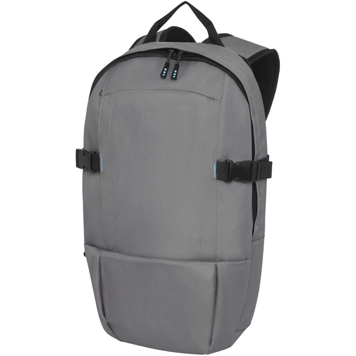 Kestävä, GRS-sertifioitu RPET-reppu kannettavalle, joka on valmistettu 50-prosenttisesti kierrätysmateriaaleista. Suuri vetoketjullinen päälokero, jossa on pehmustettu 15”:n kannettavan tietokoneen suojatasku tarranauhalla, riippukoukku ja pystysuuntainen vetoketjullinen etuosa. Mukana lisähihnat, joissa turvallisuuden takaava solki, mukavat pehmustetut olkaimet, tarttumakahva, verkkotausta vetoketjullisella taskulla ja laajennettava verkkosivutasku.