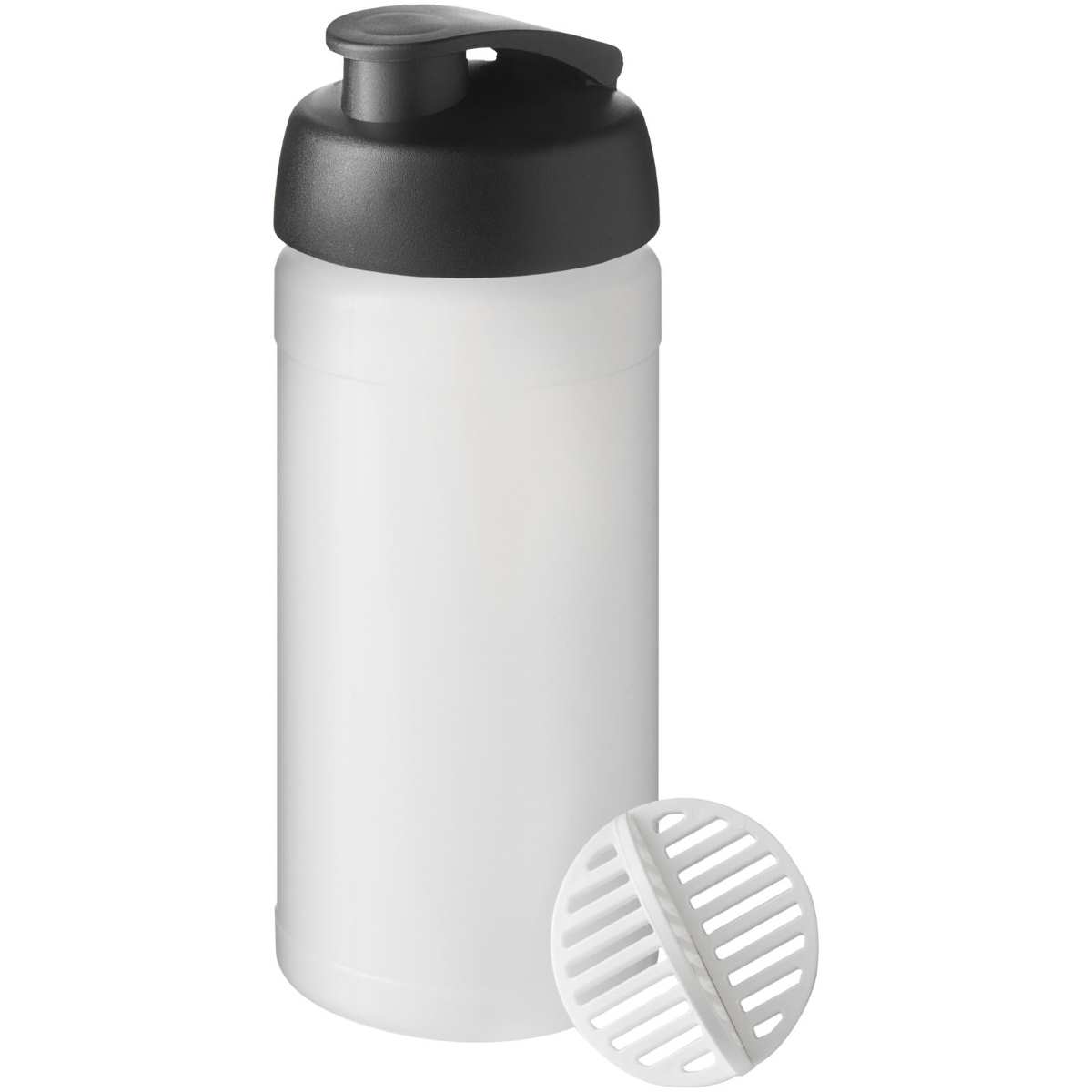 Yksiseinäinen juomapullo ravistinpallolla proteiinipirtelöiden tasaiseen sekoittamiseen. Roiskumaton läppäkansi ja napsautettava korkki. Tilavuus on 500 ml. Valmistettu Isossa-Britanniassa.