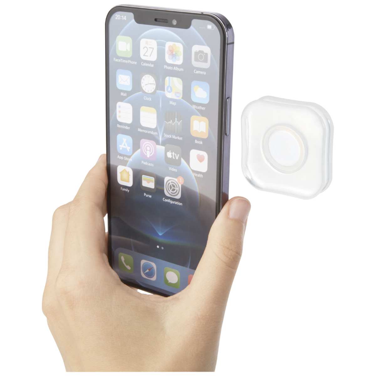 Pesunkestävä ja uudelleen käytettävä kannettava puhelinteline vahvalla liimapinnalla. Teline voidaan kiinnittää mille tahansa tasaiselle pinnalle, jossa se pysyy tukevasti ja lujasti. Heikentynyt liimapinta voidaan palauttaa pesussa. Mukaan tulee suojakotelo, joka helpottaa säilytystä.