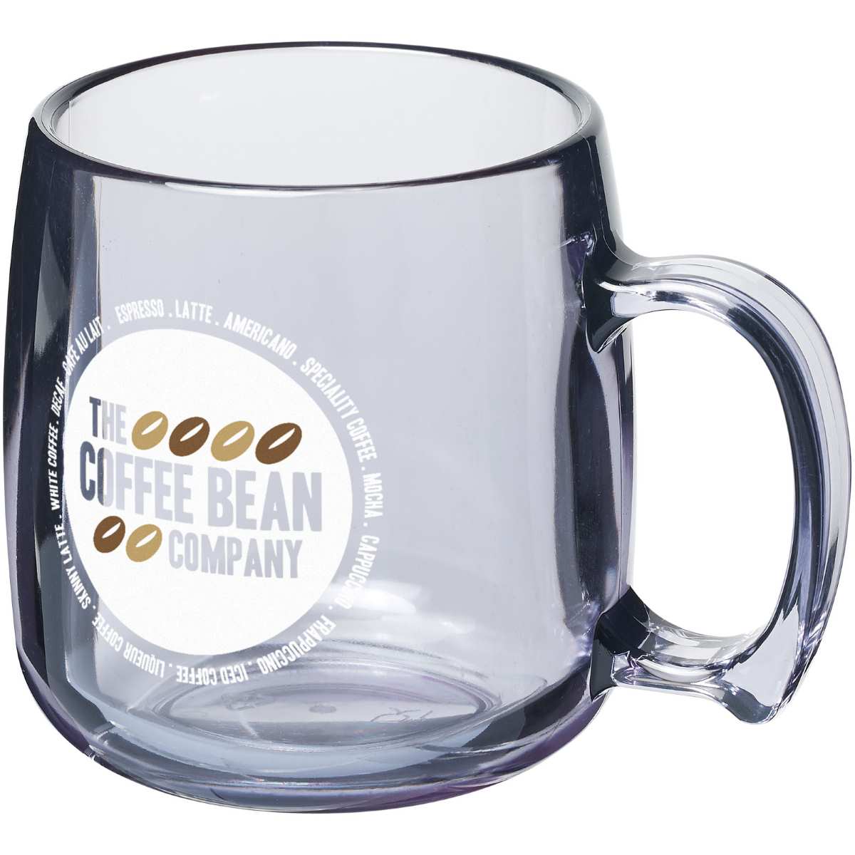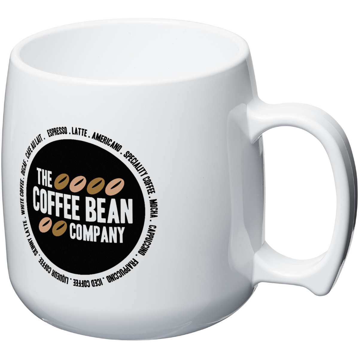 Kestävä, yksiseinäinen muovimuki. Tilavuus on 300 ml. Tehty Isossa-Britanniassa.