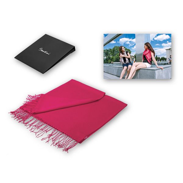 Elegantti huivi jossa on hapsut molemmissa päissä. Materiaalina 35% viskoosia ja 65% polyesteria. Toimitetaan tyylikkäässä mustassa lahjalaatikossa (155g/m²).