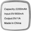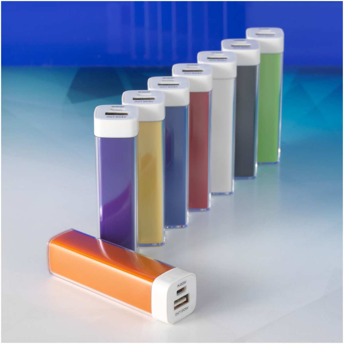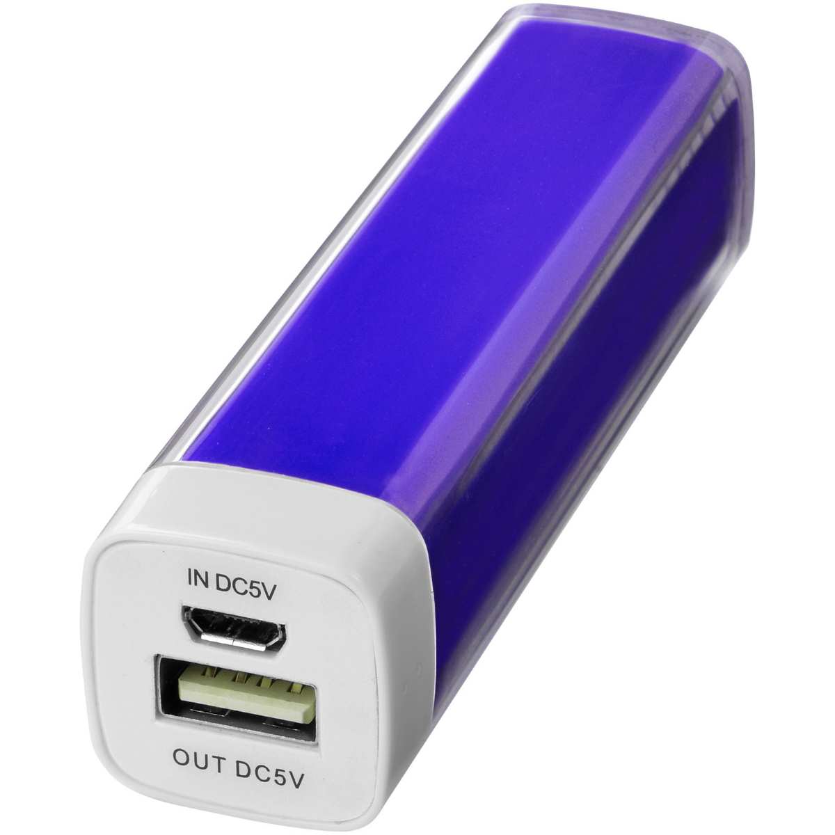 2200 mAh kapasiteetti (5V/1A) lataa mm. älypuhelinta. Latautuu kahdessa tunnissa, USB kaapeli sisältyy. Merkkivalo on punainen ladattaessa, pois kun lataus valmis ja sininen kun kokonaan ladattu. Pakkaus valkoinen kartonkikotelo.