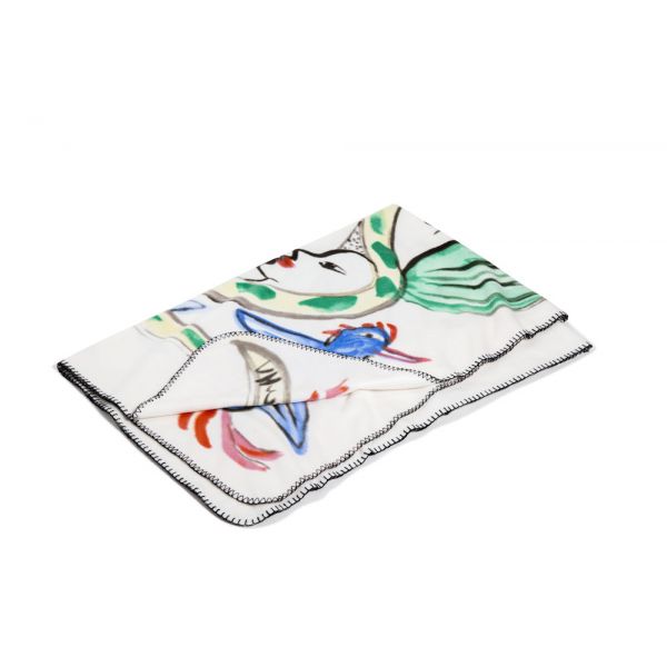 Hieno fleecepeitto Fågelsång -kuvioinnilla.