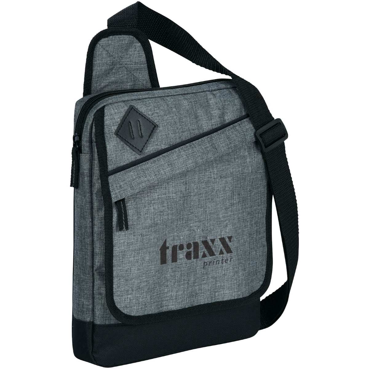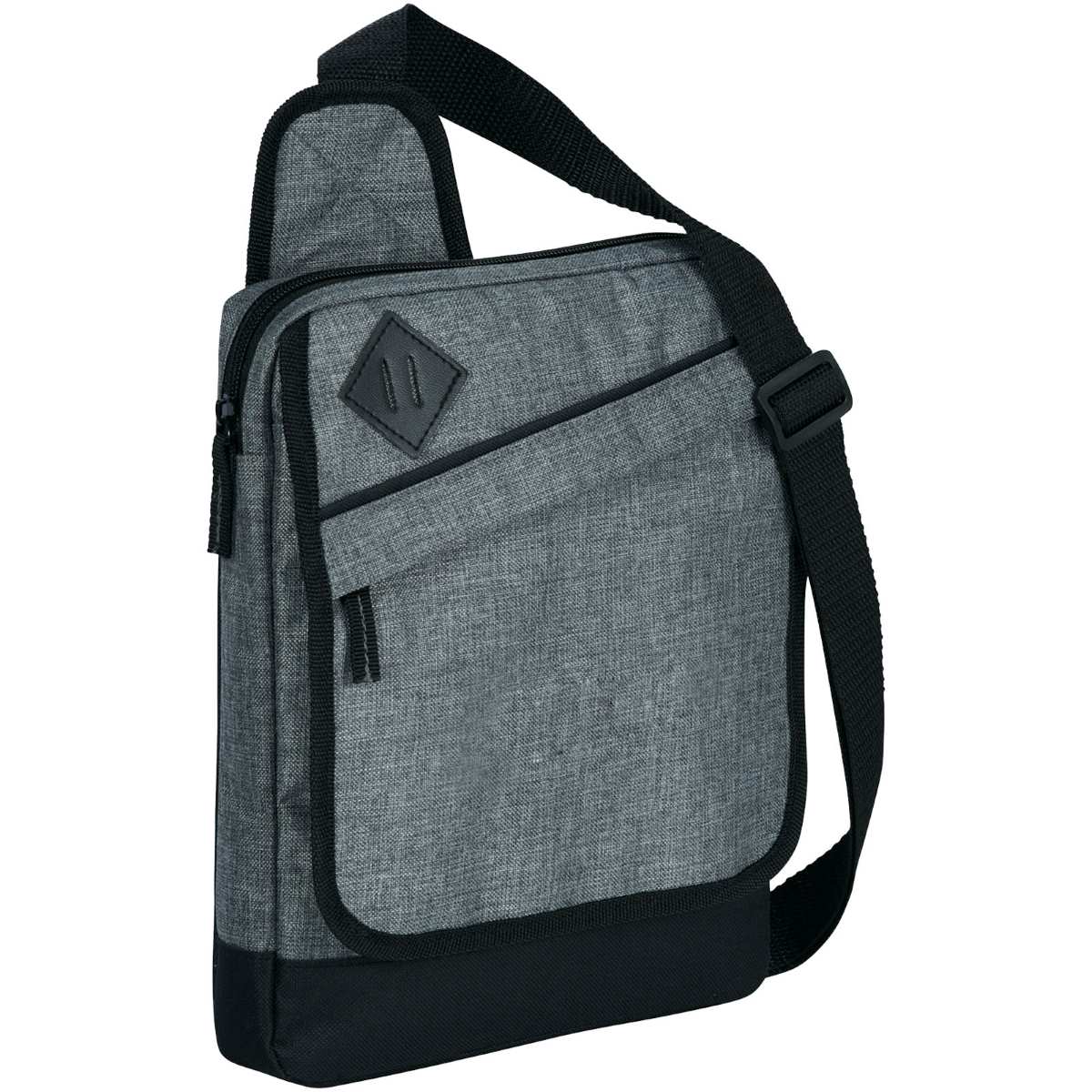 Pehmustettu päälokero iPadille tai tabletille. Etuläpässä vetoketjutasku sekä avoin tasku säilytystä varten. Säädettävä olkahihna.