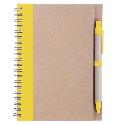 Sinulle, jolle ekologisuus ja kierrätys, vihreys on tärkeää. Valmistettu kierrätysmateriaaleista. Ekologinen puhdas valinta. Muistikirja kuulakärkikynällä. 8 erilaista värivaihtoehtoa kansien, kynän osan väreissä: Keltainen, sininen, tummansininen, vihreä, vaaleanvihreä ,musta, oranssi, violetti. 60 sivua ja elastinen sulkijanauha ja kuulakärkikynä. Viivoitettu paperi.