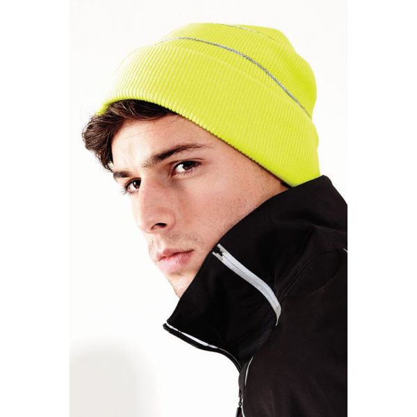 Pipo jossa on kaksi heijastavaa raitaa, jotka kiertävät koko pipon ympäri. Kaksinkertainen kudonta. Materiaali 100% pehmeää akryylia.
