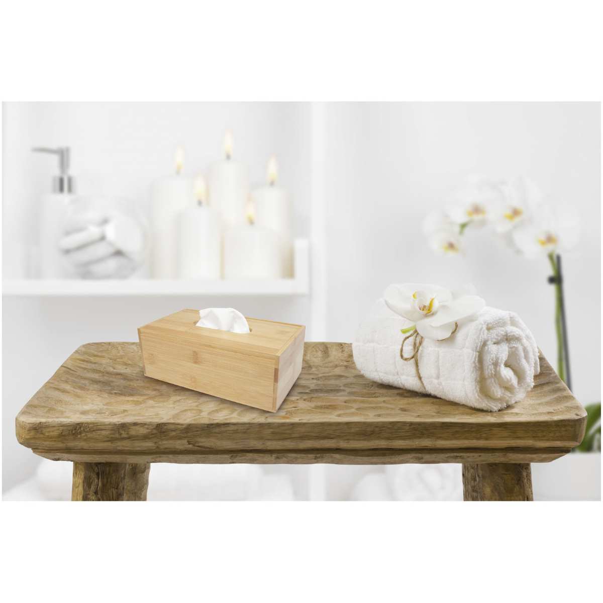 Bambusta valmistettu nenäliinarasia, luonnollinen ja moderni design. Nostokansi, jonka ansiosta rasia on helppo avata ja täyttää, kun nenäliinat loppuvat. Rasiassa käytetty bambu on hankittu ja valmistettu kestävän kehityksen standardien mukaisesti.