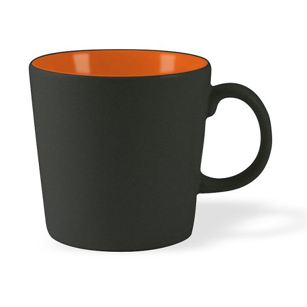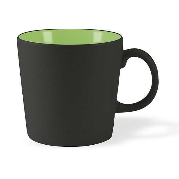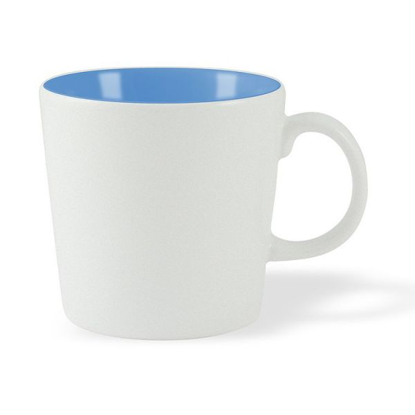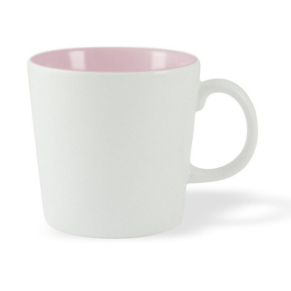 Kahvimuki kiiltävällä värillisellä sisäpinnalla ja himmeällä matta ulkopinnalla. Korkeus 80mm, tilavuus 25cl. Mukeja pystyy pinoamaan kolme päällekkäin.