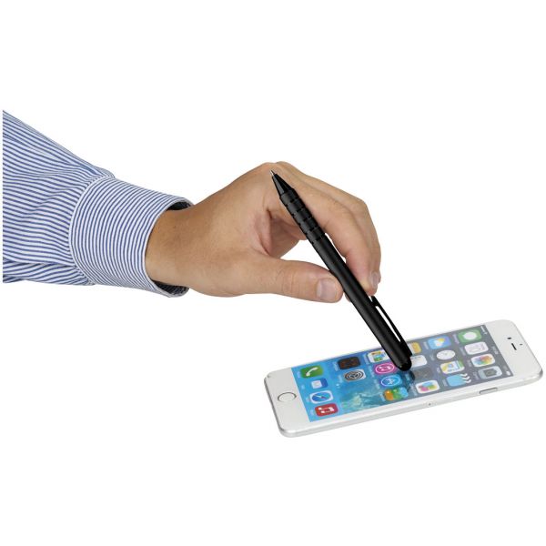 Fiber Stylus kuulakärkikynä. Eksklusiivisesti muotoiltu stylus kuulakärkikynä, jossa on trendikäs kuviointi. Brandi klipsissä ja kestävä stylus-kuitukärki kaikille näytöille, myös iPad ja iPhone. Musta Premium-muste. Kynän värinä musta. Valmistettu metallista.
