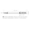 Hyvä valkoinen kuulakärkikynä, jonka klipsin alla on värillinen yksityiskohta. Kynässä on kiiltävä hopeanvärinen kirjoituspää, jonka vieressä on värillinen rinkula. ø 1,0 mm sininen muste, saatavana myös halutessa mustalla musteella.