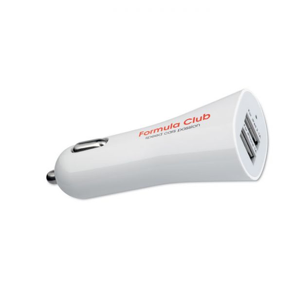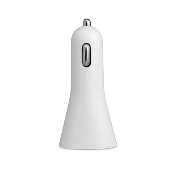 USB-autolaturi kestävästä muovista (ABS). Laturissa on kaksi USB-porttia, jotka käyvät älypuhelimiin sekä sininen merkkivalo.