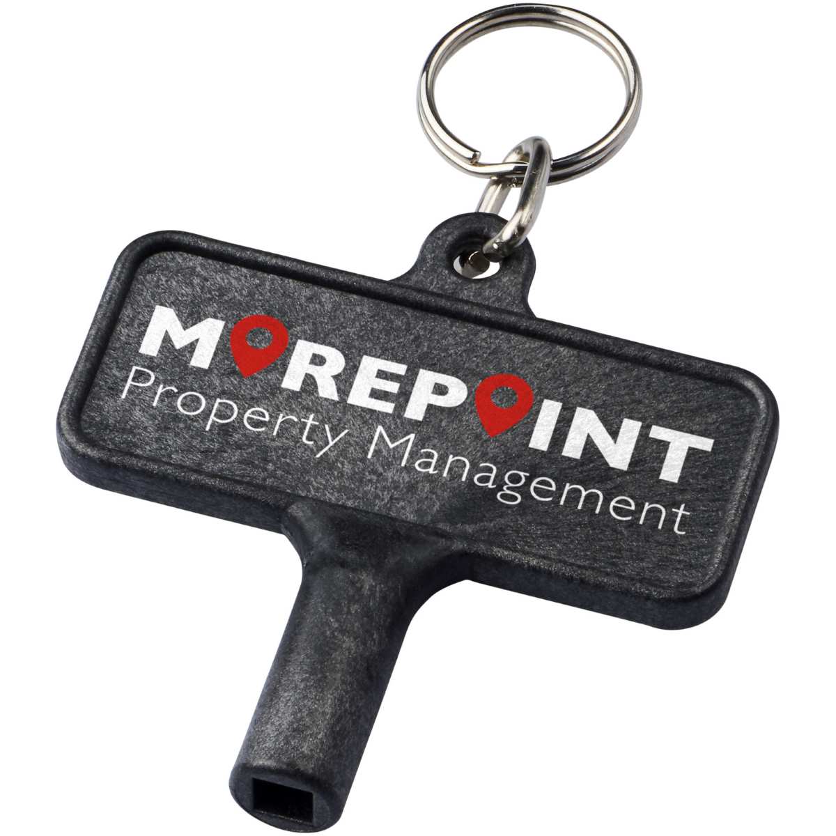 Avaimenperä, jossa on yleisavain esimerkiksi lämpöpattereille, mittarikaapeille, lyhtypylväille. Neliönmuotoisen aukon reunat ovat 5 mm:n pituiset.