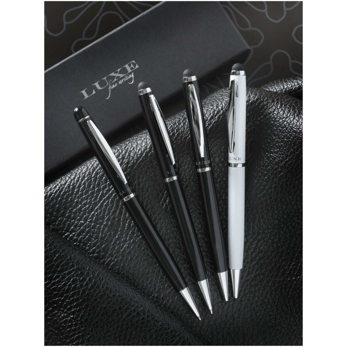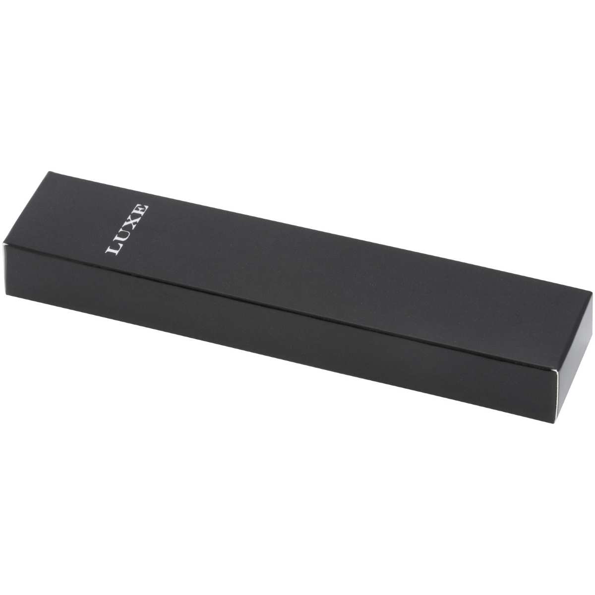 Ylellisesti muotoiltu kierretoimintamekanismilla toimiva stylus-kuulakärkikynä samettipussilla. Pakattu ”LUXE”-lahjapakkaukseen (koko: 17 x 3.5 x 2 cm).