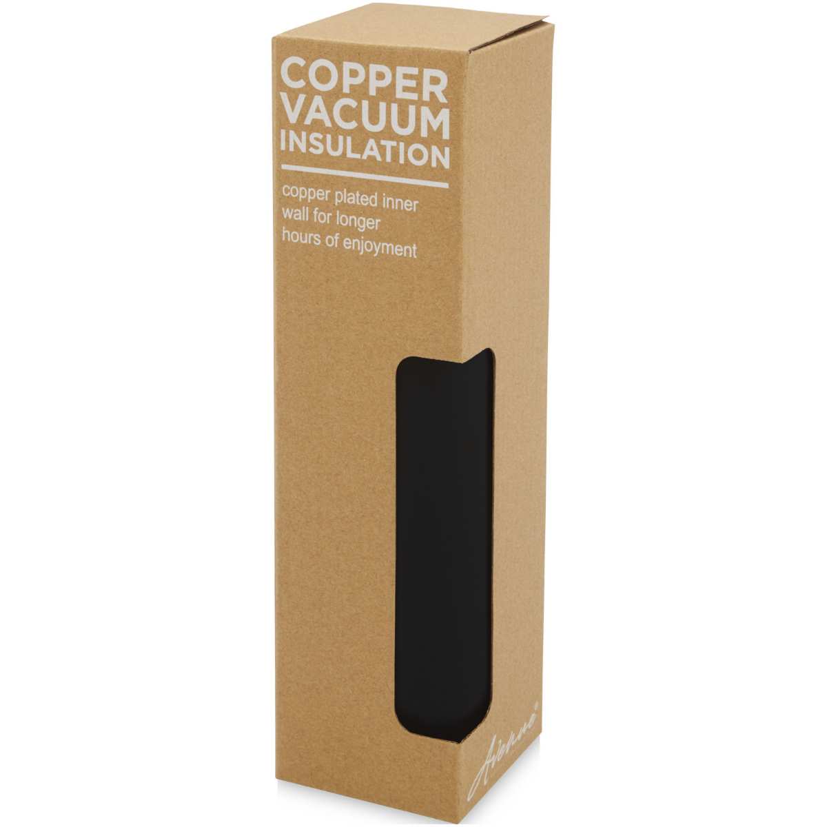Marka-pullossa on kuparieristetty tyhjiörakenne, joka pitää juomat kuumina tai kylminä useita tunteja. Eristetty 18/8 ruostumaton teräs estää kondensoitumisen pullon ulkopuolelle, ja trendikäs mattapinnoitus tekee siitä erityisen kestävän. Siinä on myös roiskevesitiivis kierrekansi ja kestävä sinkkiseoksesta valmistettu käsilenkki. BPA-vapaa, testattu ja hyväksytty Saksan elintarviketurvallisuslainsäädännön (LFGB) mukaisesti. Testattu ja hyväksytty ftalaattipitoisuuden osalta REACH-asetusten mukaisesti. Sopii useimpiin tavallisiin auton mukinpidikkeisiin. Tilavuus on 600 ml. Suositellaan pestäväksi käsin. Toimitetaan kierrätetystä kartongista valmistetussa lahjapakkauksessa.