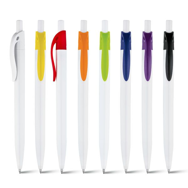 Kuulakärkikynä mustalla musteella. Kynässä on valkoinen runko ja klipsi on värillinen. Klipsin värivaihtoehtoina: musta, sininen, punainen, valkoinen, keltainen, oranssi, violetti ja vaaleanvihreä.