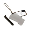 Matkalaukku tägi Runaway, jossa on taitettava osoitekortti sekä integroitu irroitettava kuulakärkikynä ja kiinnitysnaru.