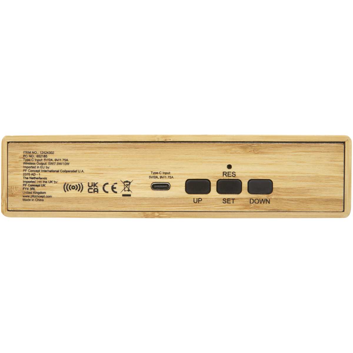 Langaton Minata-latauspöytäkello on ihanteellinen käytettäväksi millä tahansa toimisto- tai yöpöydällä. Yläpinnassa on 10 W:n langaton latausalusta yhteensopivia laitteita varten. Kellossa on hälytystoiminto, se voi näyttää lämpötilan joko Fahrenheit- tai Celsius-asteikolla ja näyttää kolme valon kirkkaustasoa. Lisävarusteena USB-lähtö (5 V / 1,5 A) kaapelilla lataamista varten. Yhteensopiva kaikkien Qi-laitteiden kanssa (iPhone 8 tai uudempi ja Android-laitteet, jotka tukevat langatonta latausta). Toimitetaan lahjapakkauksessa, joka sisältää käyttöohjeet (molemmat kestävistä materiaaleista).