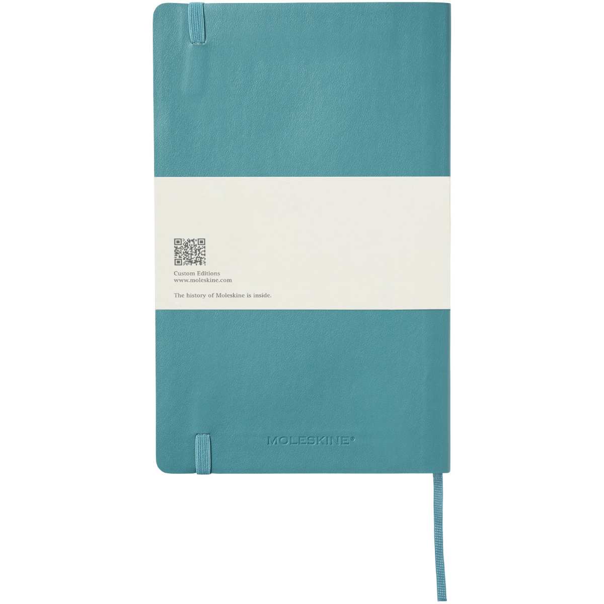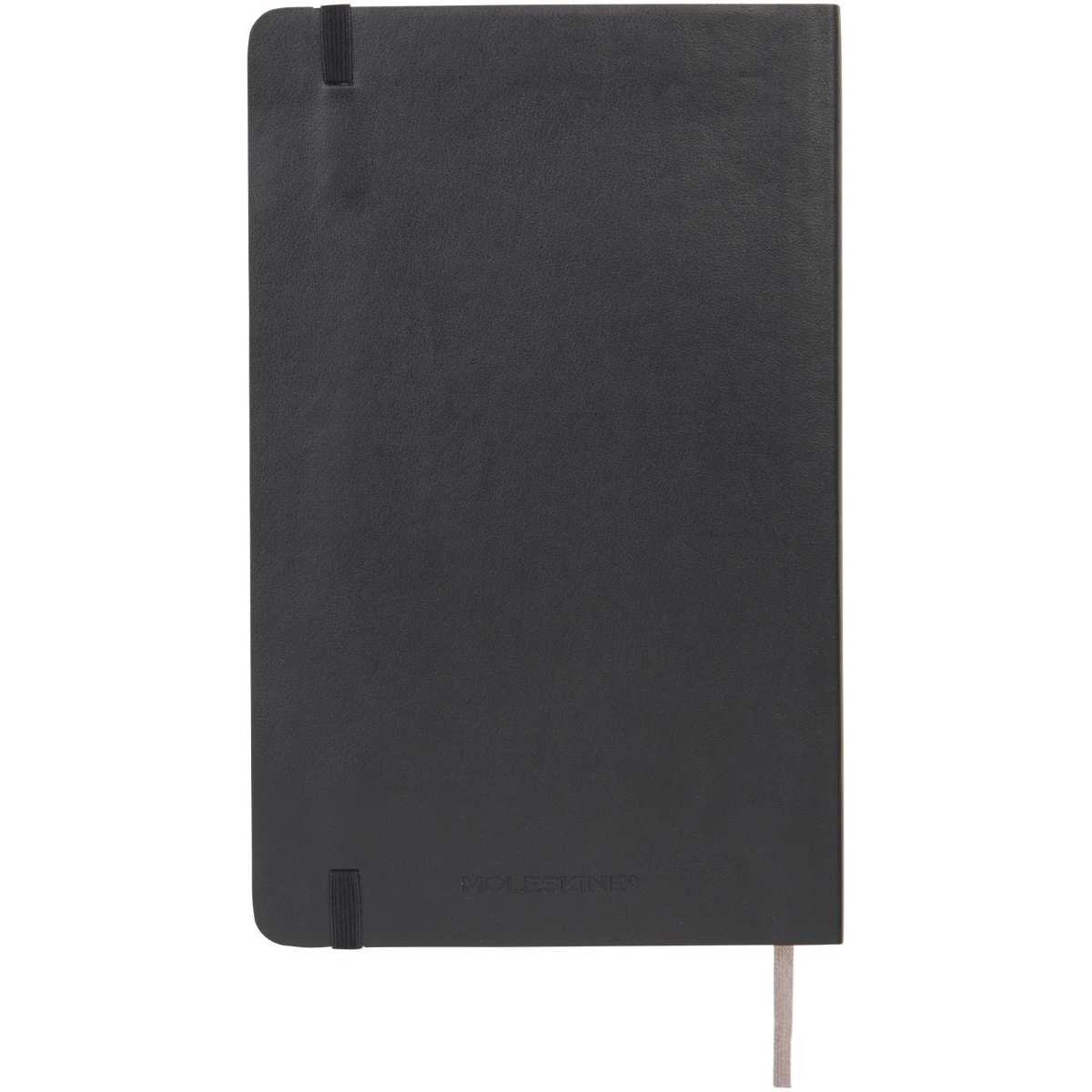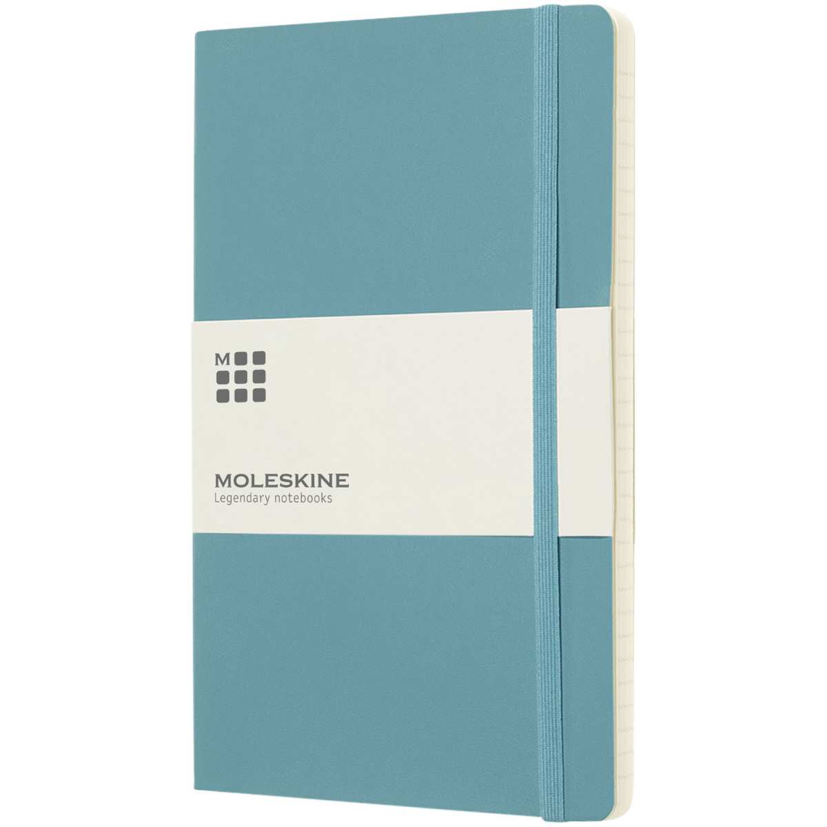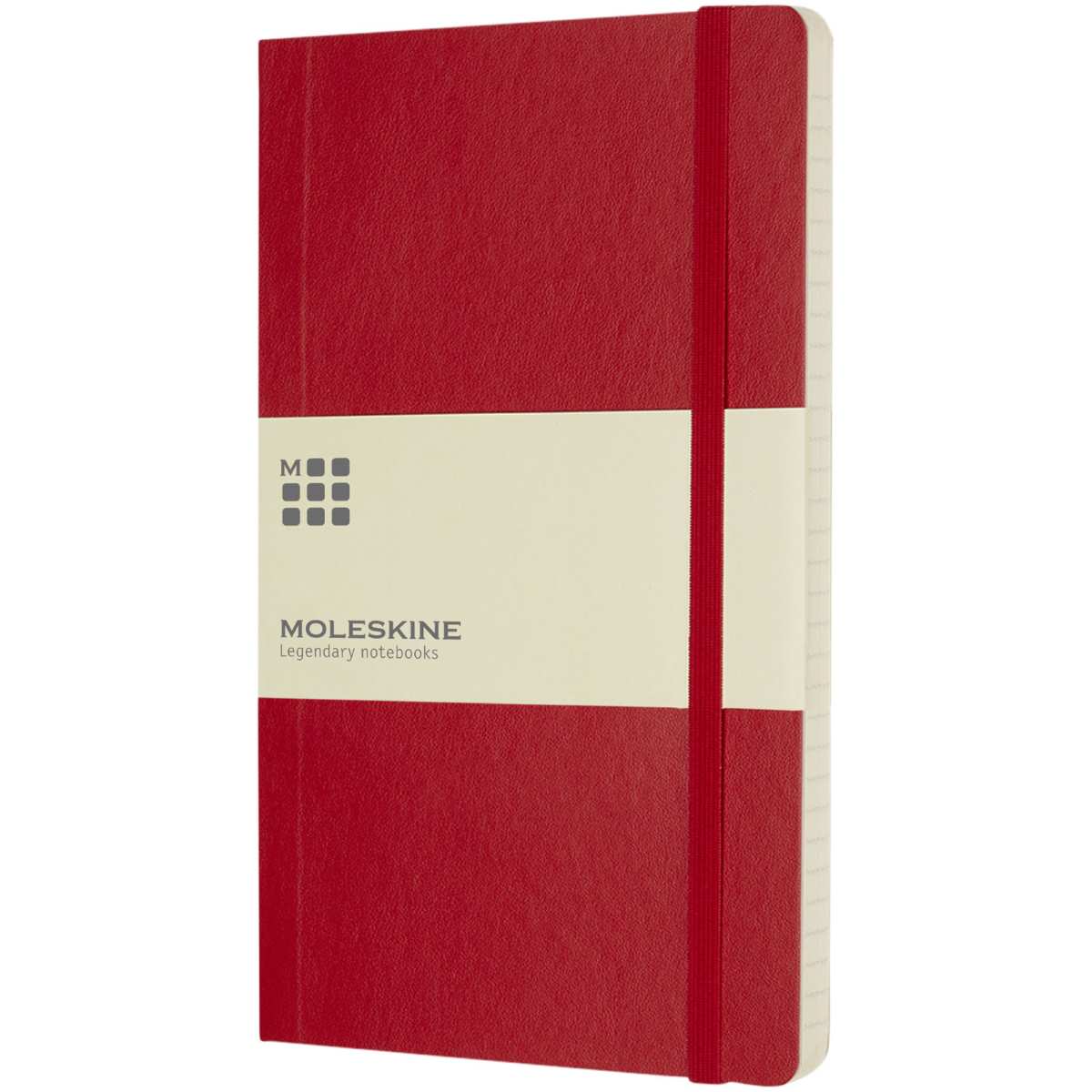 Moleskinen pehmeäkantinen Classic-muistikirja (koko L, 13×21 cm) Saatavana useita tyylikkäitä ja kirkkaita värivaihtoehtoja. Muistikirjassa on kartonkinen pehmeä kansi, pyöristetyt kulmat, happovapaata paperia olevat sivut, kirjanmerkki ja elastinen suljin. Ensimmäisellä sivulla on häviämisilmoitus, johon voi myös kirjata löytöpalkkion. Takakannessa on avattava sisätasku, joka sisältää Moleskinen historiaa. Taskussa voidaan säilyttää irtonaisia papereita ja muistiinpanoja. 192 norsunluuväristä viivoitettua sivua.