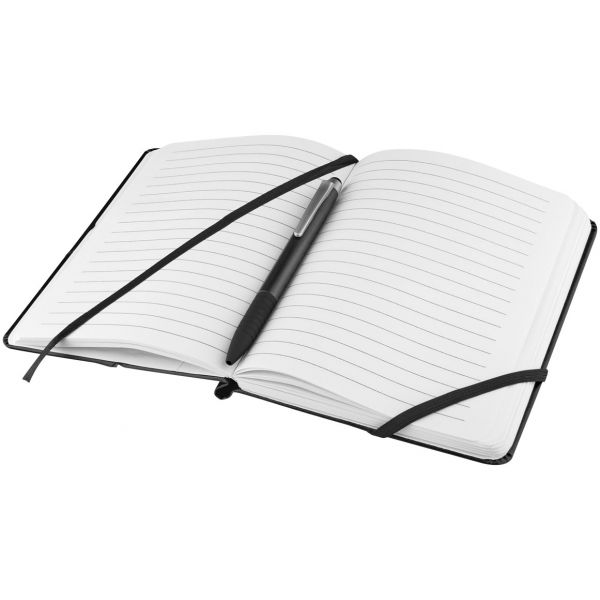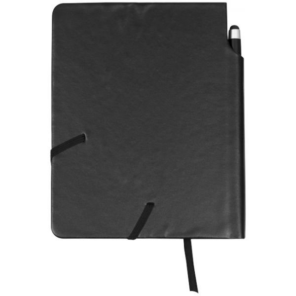 Muistikirja jossa on joustava suljin. Mukana muovinen stylus-kuulakärkikynä. 80 viivoitettua valkoista A6 paperiarkkia (70g/m²). Ultrahyde materiaali. Värivaihtoehtoina musta ja sininen.