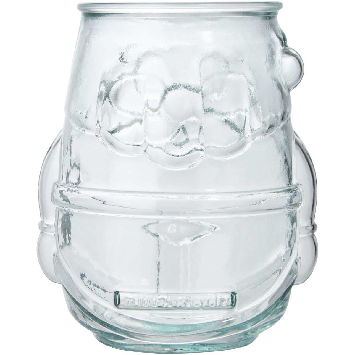 Joulupukin muotoinen, kierrätyslasista valmistettu tuikkukuppi. Valmistettu yhdestä lasipullosta. Kierrätyslasi valmistetaan vähemmällä energialla, raaka-aineilla ja lisäaineilla kuin mitä perinteisen lasin valmistaminen edellyttää. Tuikku ei sisälly toimitukseen.