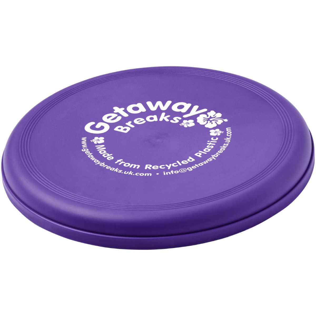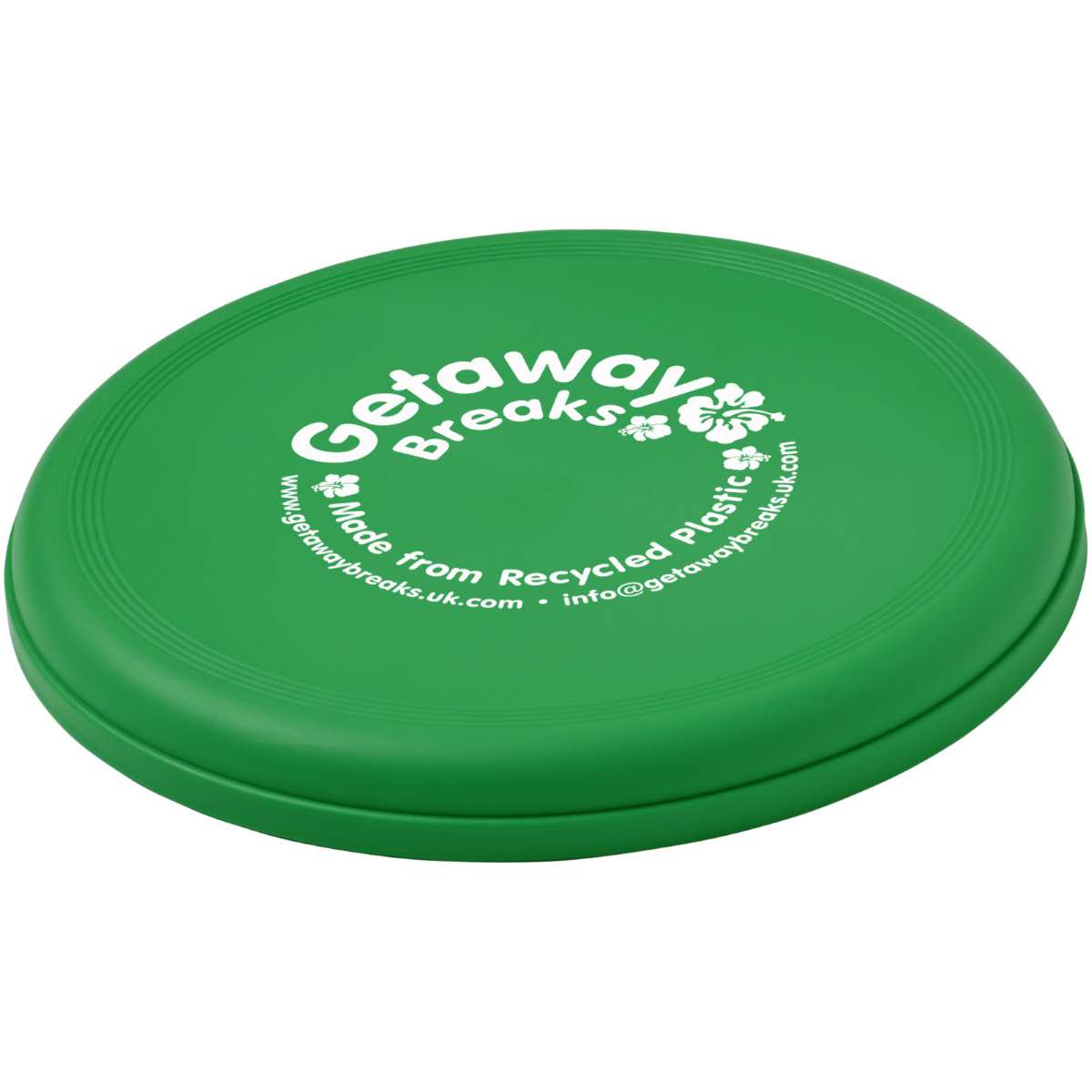 100-prosenttisesti kierrätysmuovista valmistettu frisbee, jossa yhdistyvät hauska myynninedistämisidea ja vastuullisuus. Valmistettu Iso-Britanniassa, täyttää EN72-vaatimukset. Kierrätysmateriaalin luonteen vuoksi frisbeessä voi olla pilkullinen pinta.