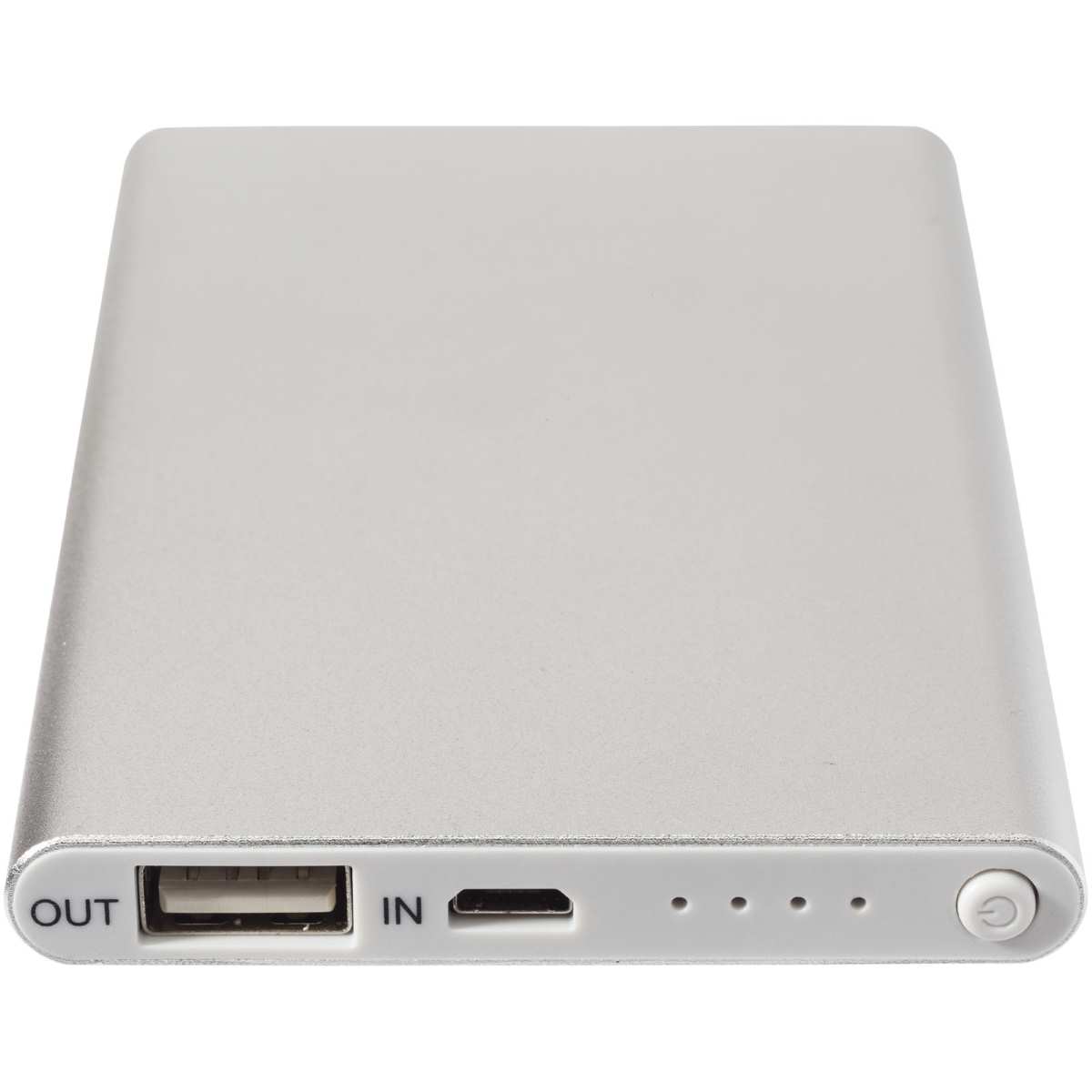 Ohuessa ja kevyessä alumiinilaturissa on A-luokan litiumpolymeeriakku, jonka kapasiteetti on 4000 mAh. LED-merkkivalot syttyvät latauksen aikana ja näyttävät laturin jäljellä olevan virran. Laturin sisääntulo on 5V/1A ja ulostulo 5V/1A. Mukana USB-mikro-/USB-latausjohto. Valkoisessa lahjakotelossa.