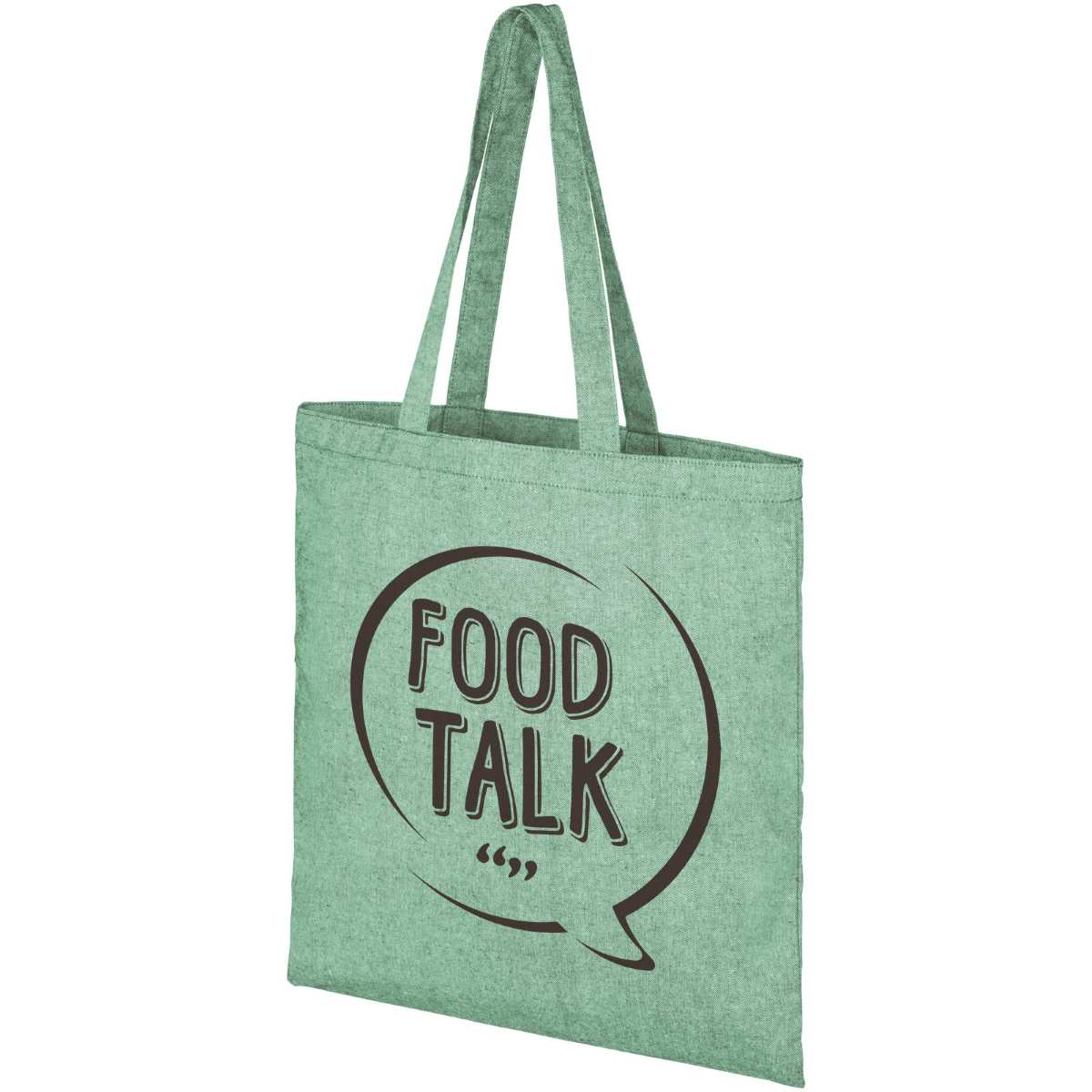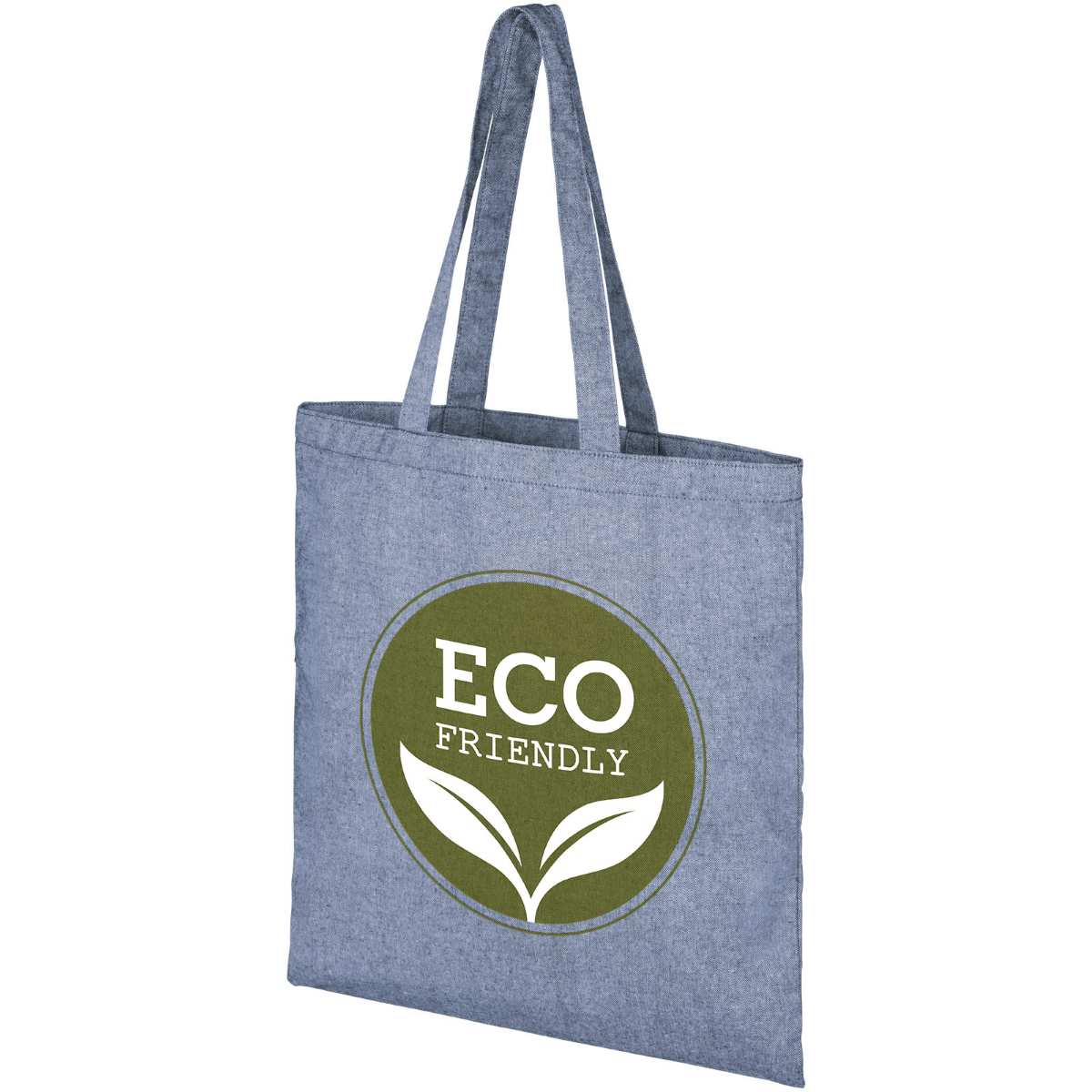 Kierrätetystä puuvillasta ja polyesteristä (150 g/m²) valmistetun kassin kahvojen pituus on 31 cm ylhäältä kassin reunaan mitattuna. Kierrätetty puuvilla valmistetaan valmistusmateriaalin ylijäämästä, jota syntyy tekstiilitehtaissa leikkaamisen aikana. Samankaltaiset värit sekoitetaan yhteen, mikä tarkoittaa, ettei lisävärjäys ole tarpeen. Kassi taittuu helposti pieneen tilaan. Sopii mainiosti kauppaan, retkille tai työntekoon. Kierrätetyn puuvillan vuoksi valikoiman värissä voi olla vaihtelua, mutta se lisää kassin ulkonäön aitoutta. Kantokyky 5 kg.