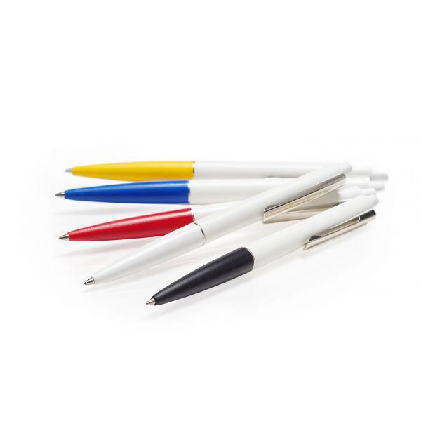 Todellinen mainoskynä. Metallinen klipsi ja suuri painoala. Sveitsiläinen Premec -kärki kuten kaikissa Priot -kynissä. Värivaihtoehtoina musta, punainen, sininen, valkoinen ja keltainen.
