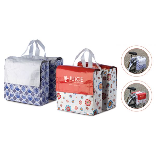 Tämä laukku helpottaa tavaroiden kuljettamista polkupyörällä. Yhdistetyn kauppa -ja polkupyöräkassin avulla ostokset kulkee helposti mukana. Tarranauhakiinnitys. Koko: 290 x 330 x 105mm. Merkkauskoko: 125 x 210mm.