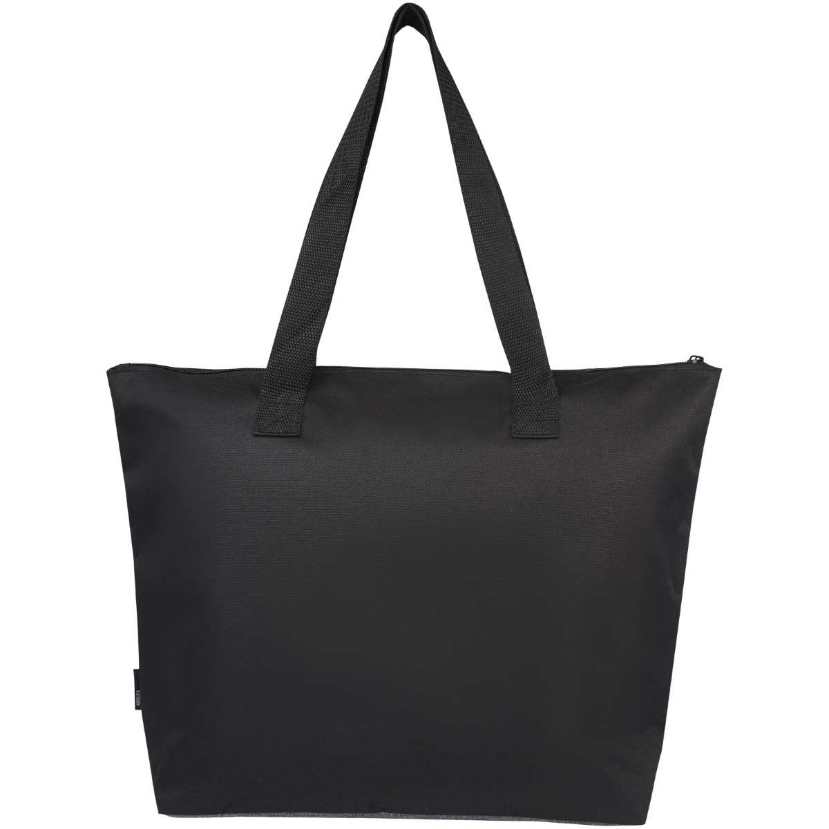 Reclaim GRS-kierrätetty kaksivärinen vetoketjullinen kassi on valmistettu ulkopuoleltaan 100-prosenttisesti GRS-kierrätetyistä materiaaleista ja siinä on etutasku ja vetoketjullinen päälokero. Mainio ja kestävä vaihtoehto muovisille ostoskasseille. Kahvan pituus on 25 cm. Kantokyky 10 kg.