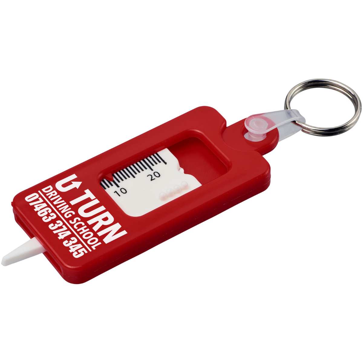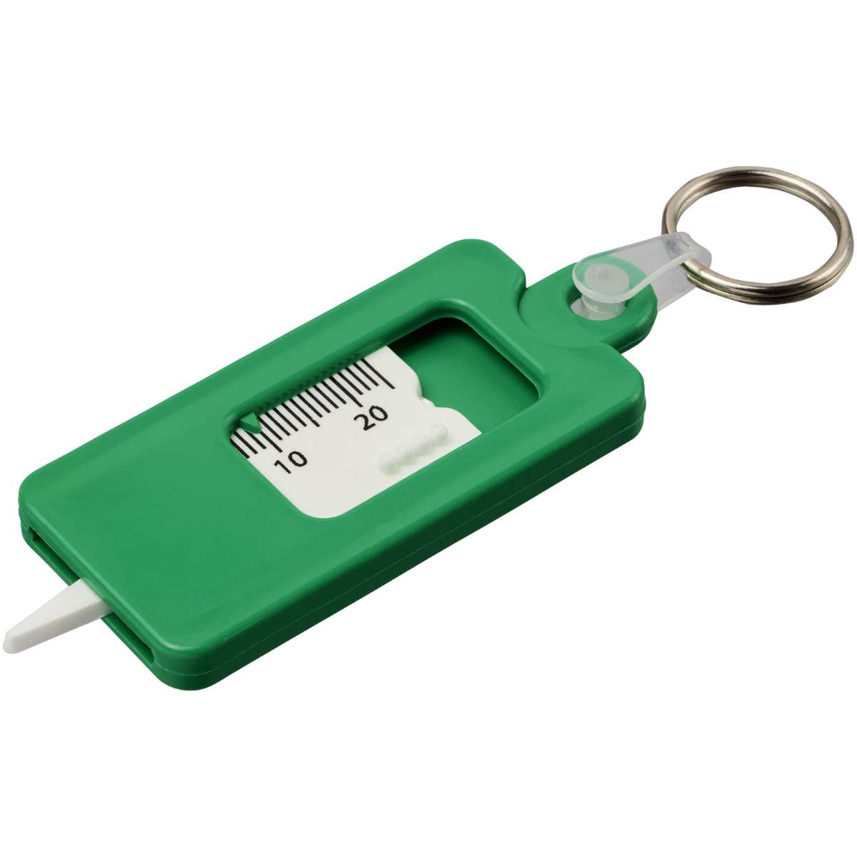 Kätevä kannettava työkalu, jolla voi tarkistaa, että auton renkaiden kuvioiden syvyys on turvallinen ja laillisissa rajoissa.