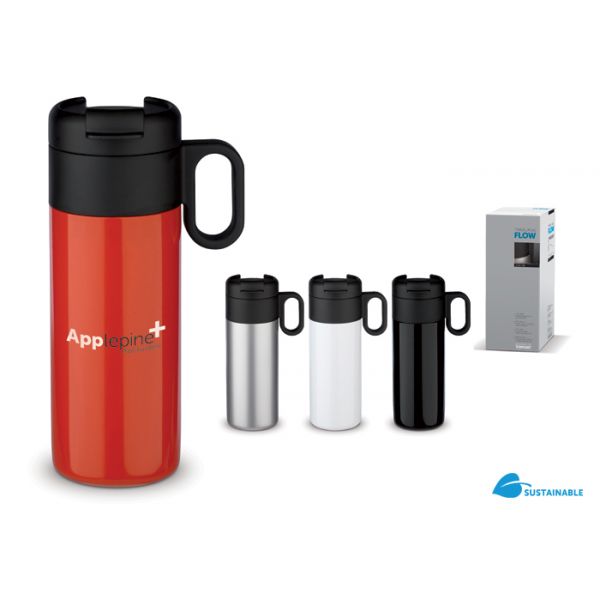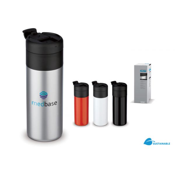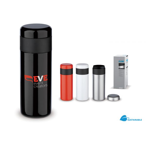 Tyylikkäässä ja 100% tiiviissä termospullossa/mukissa on on tyhjiö tuplaseinien välissä. Ruostumattomasta teräksestä valmistettu tuote on tehty valvotuissa olosuhteissa ja kuuluu Toppointin suunnittelemaan Flow-sarjaan. Koko: halkaisija 70 x 200mm. Tilavuus: 40 cl. Merkkauskoko: 205 x 125mm.