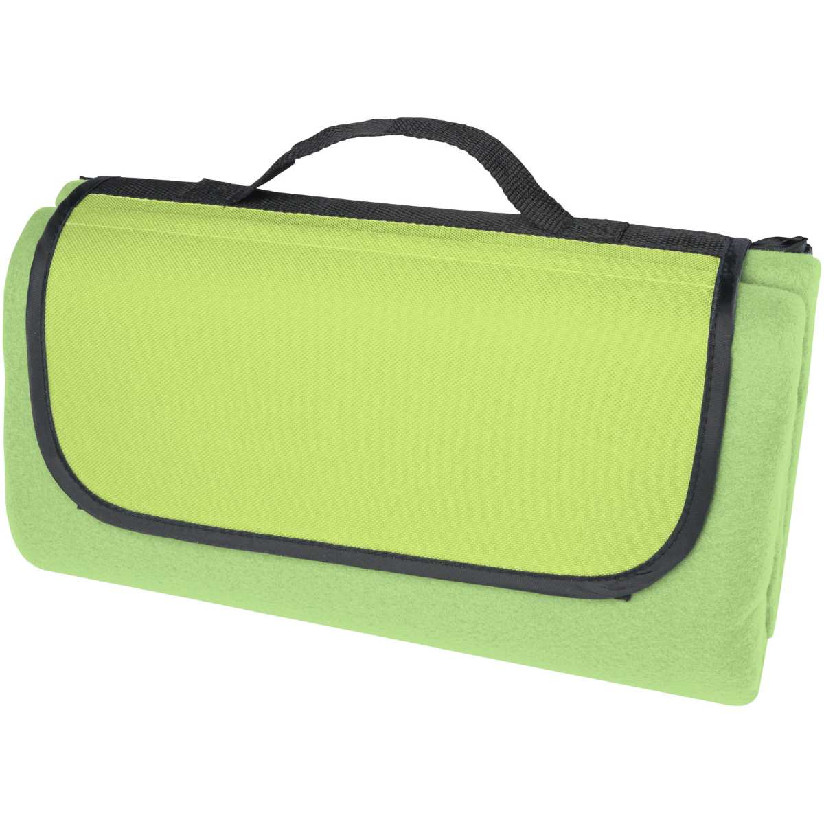 Vedenpitävä piknikhuopa 140 g/m2 on valmistettu kierrätetystä PET-muovista luontoa säästäen. Kun huopa on kääritty kokoon, sitä on helppo säilyttää ja kantaa mukana olevalla kantokahvalla.