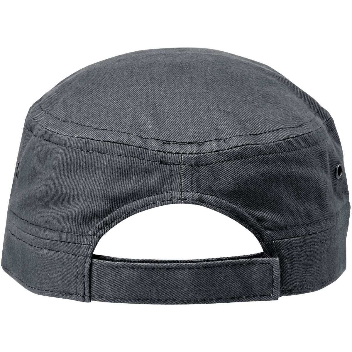 Metalliset pujotusreiät. Kangaskoukku ja kiinnike. Lakki 100 % puuvillaa, tarranauhakiinnitys. Koko 58 cm.