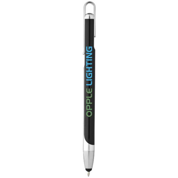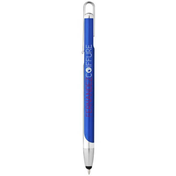 Jännän mallisella klipsillä varustettu metallinen kosketusnäyttökynä.