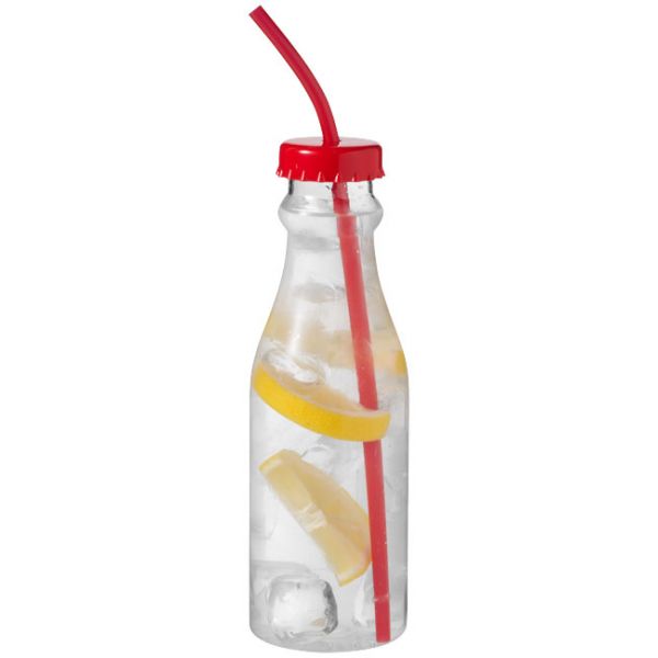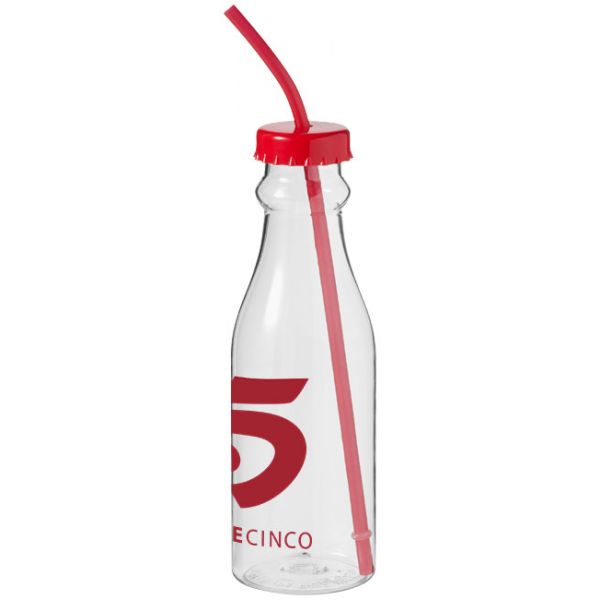 Soda pullo. Yksiseinäinen juomapullo, kierrettävä kansi ja pilli. Tilavuus on 630 ml. BPA-vapaa tritan astia, PP-kansi ja pilli.