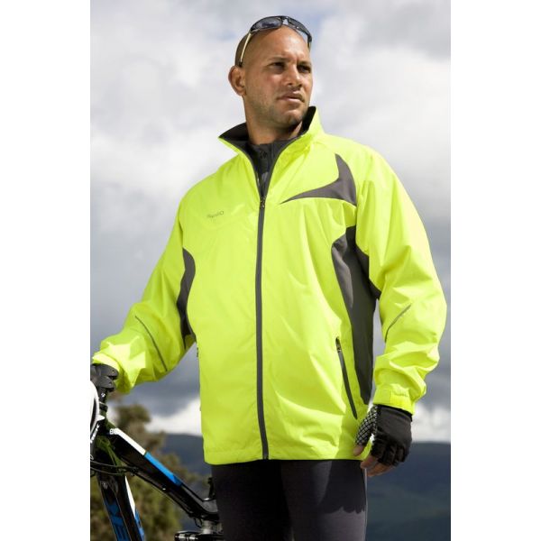 Takissa on heijastavat tereet, kaksi sivutaskua ja heijastava Spiro-logo. Myös vetoketjussa on Spiro-logo.
