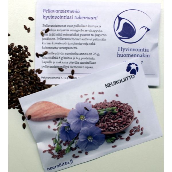 - Pussi sisältää (68 x 100 mm): auringonkukansiemen 15 g/pellavansiemen 15 g/kurpitsansiemen 10 g