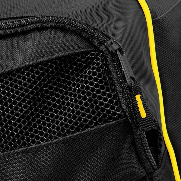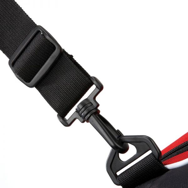 Kassissa on irrotettava ja säädettävä pehmustettu olkahihna. Päädyissä on vetoketjulliset taskut, joista toisessa on verkkopaneeli. Kassin pohjassa on suojaavat kovikkeet.