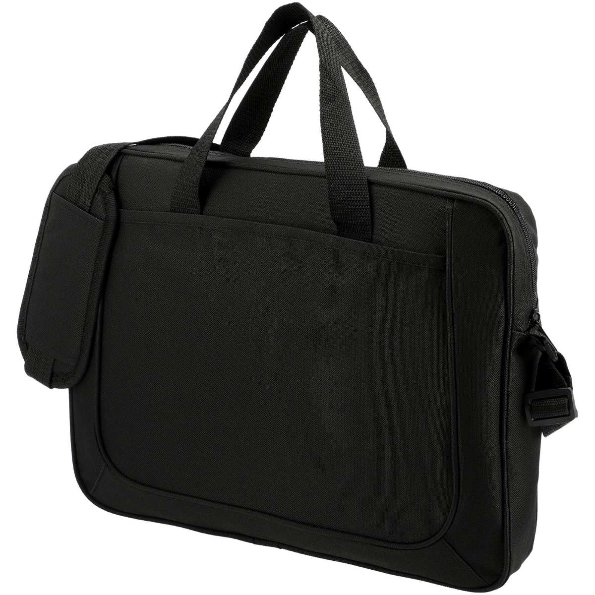Vetoketjullinen säilytystasku. Vahvistetut kaksoiskahvat. Avoin etutasku. Sivutaskut ja kynätaskut. Säädettävä, pehmustettu olkahihna.