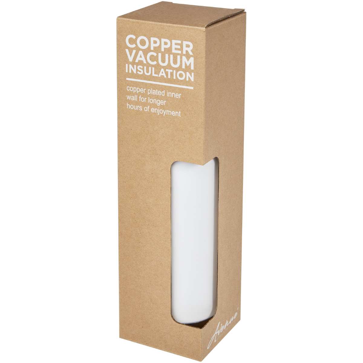 Kestävä kaksiseinämäinen ruostumattomasta teräksestä valmistettu ja kuparieristetty tyhjiörakenne, joka pitää juoman kylmänä tai kuumana tunteja. Rakenne estää myös kosteuden tiivistymisen pullon ulkopuolelle, ja tyylikäs jauhemaalaus tekee siitä erityisen kestävän. Ruostumattomasta teräksestä valmistettu vuototiivis kierrekansi, jossa on integroitu pilli ja kestävä ruostumattomasta teräksestä valmistettu käsilenkki. Leveä aukko helppoon täyttämiseen, kaatamiseen ja puhdistamiseen. BPA-vapaa, testattu ja hyväksytty Saksan elintarviketurvallisuslainsäädännön (LFGB) mukaisesti. Testattu ja hyväksytty ftalaattipitoisuuden osalta REACH-asetusten mukaisesti. Täydellinen jääkuutioille. Tilavuus on 750 ml. Suositellaan pestäväksi käsin. Toimitetaan kierrätetystä kartongista valmistetussa lahjapakkauksessa.