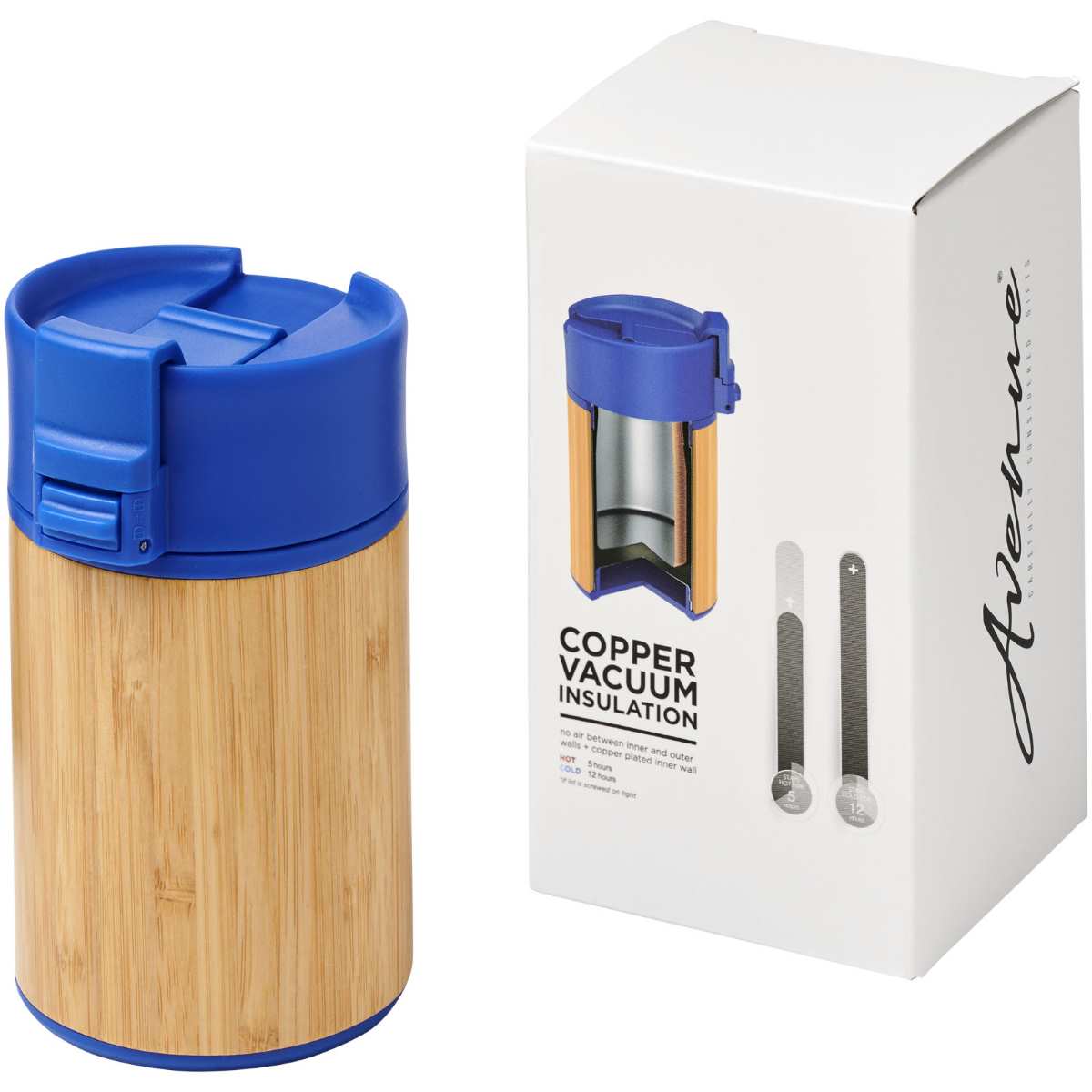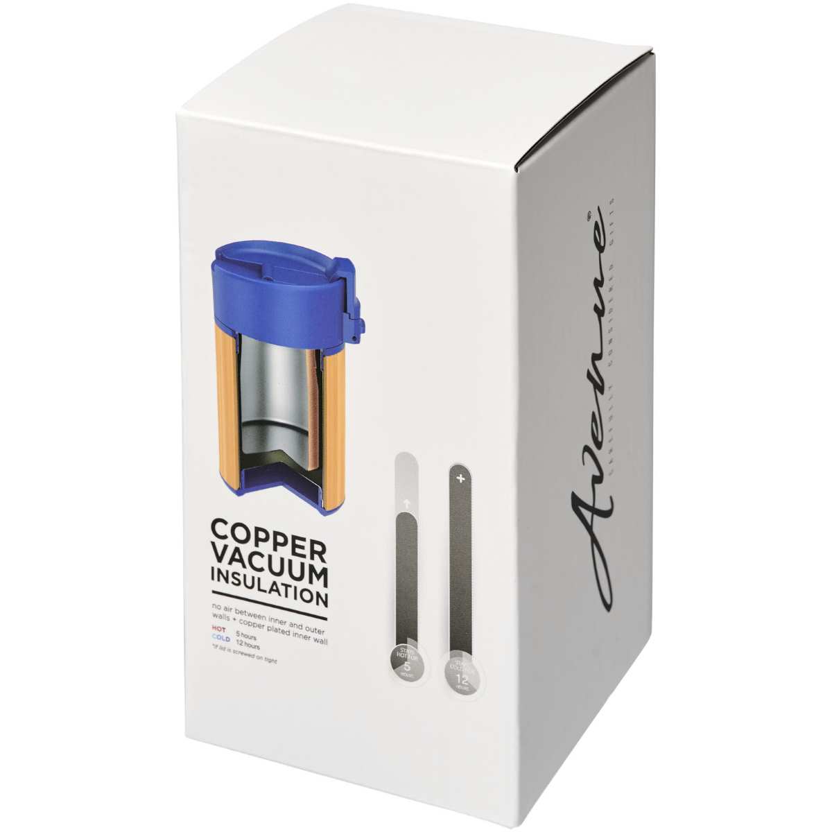 Kaksiseinäinen, vakuumieristetty juomamuki, jossa on tiivis läppäkansi. Juomamukin kaksinkertaisessa ruostumattomassa teräsrakenteessa on vakuumi- ja kuparieristys. Se pitää juomat kuumana 8 tuntia ja kylmänä 24 tuntia. Rakenne estää myös kondensaation mukin ulkopuolella. Ihanteellisen kompakti ja kannettava juomamuki matkustamiseen. Pullon tilavuus on 200 ml. Toimitetaan Avenue-lahjapakkauksessa.